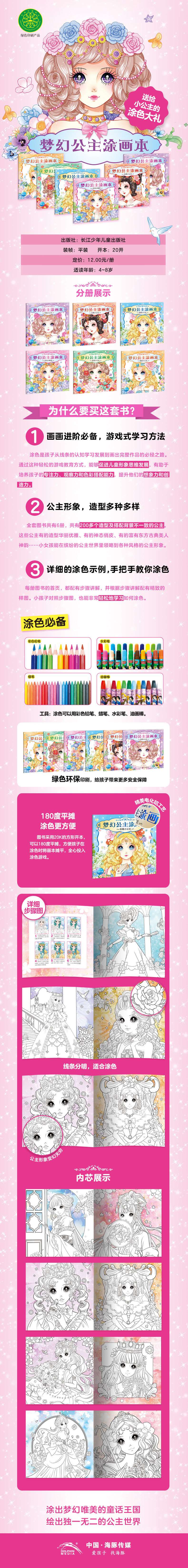 《梦幻公主涂画本》汇集200多个形象各异、精致优雅的公主造型,并提供部分公主涂色示例,小女孩可以依照涂色示例进行涂色,也可以自由发挥想象力和创造力,涂出自己心目中的美丽公主,打造一个独一无二的公主世界。全套图书分为六个主题,分别是《俏皮小公主》《百变小公主》《闪闪小精灵》《华丽小公主》《优雅小公主》《古典小公主》。根据这些形象的不同,也设计了不同的背景图画。这种人物与背景相结合的形式,将更好地开启孩子的想象之门,让孩子们进入一个梦幻唯美的童话王国。