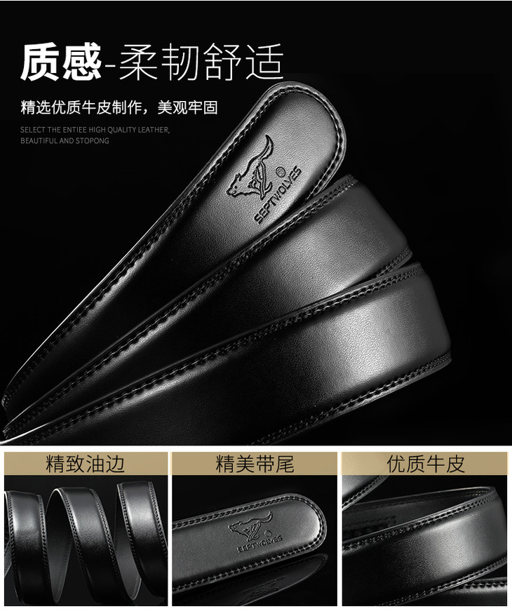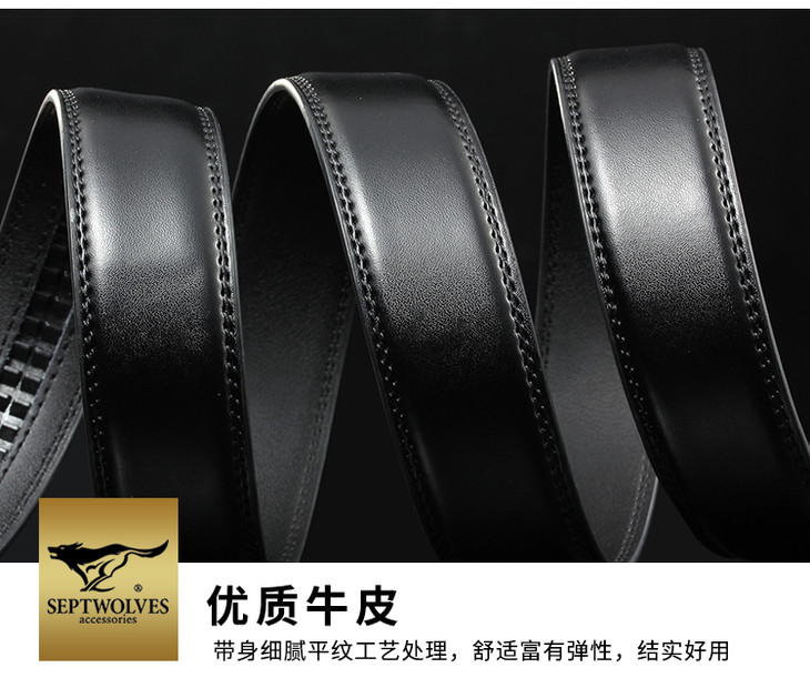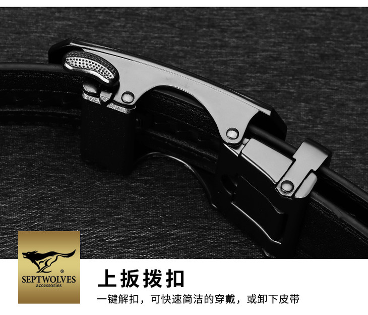 七匹狼皮带男 自动扣牛皮腰带潮流时尚中青年休闲裤带M73821A801-01黑色
