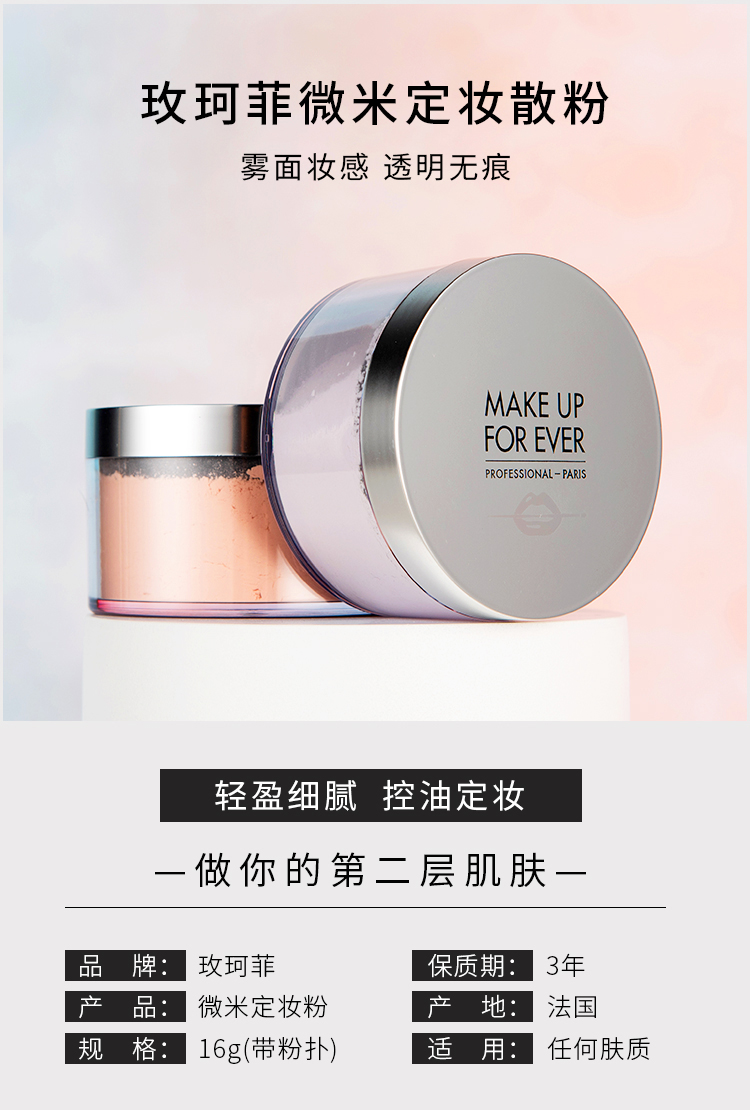 Make up for ever玫珂菲新品微米定妆粉散粉蜜粉1.2#清透紫