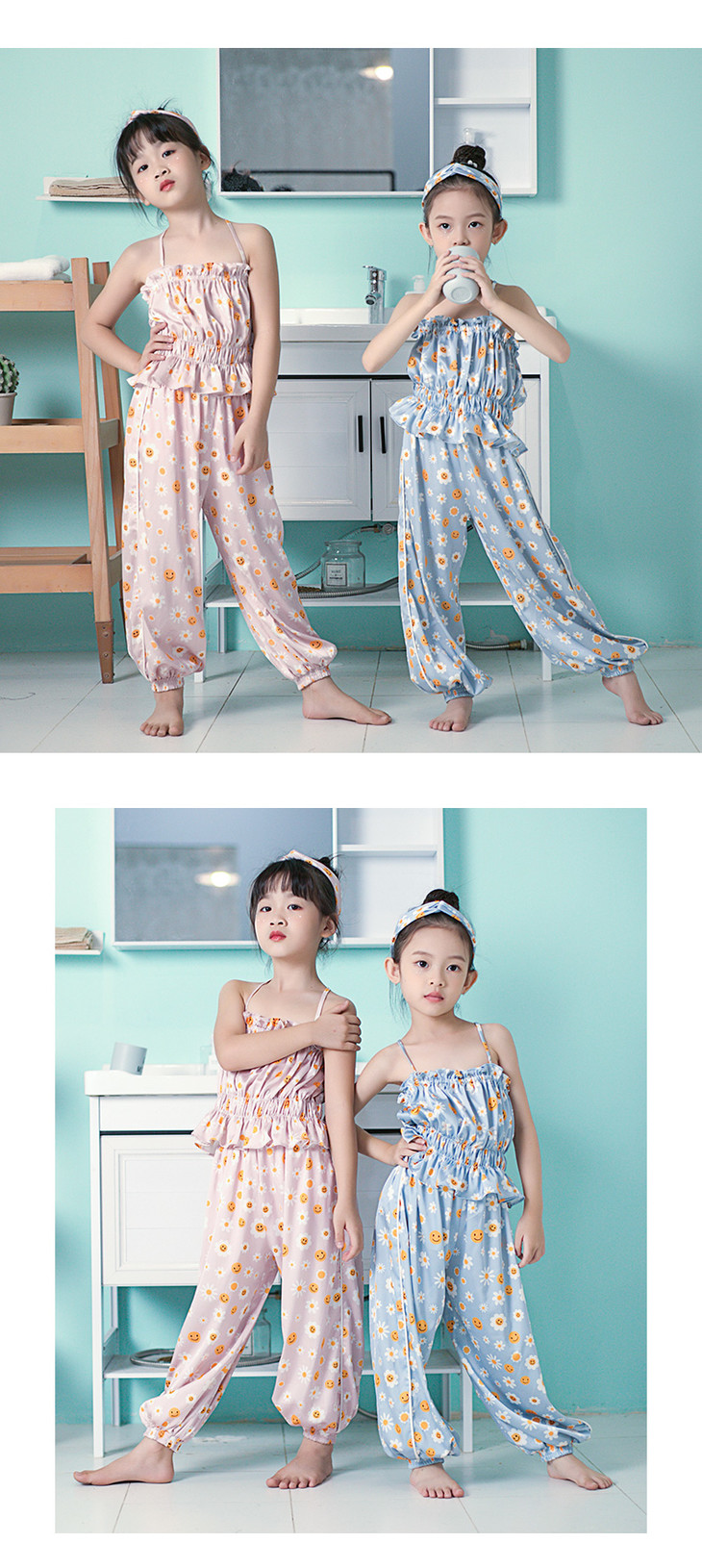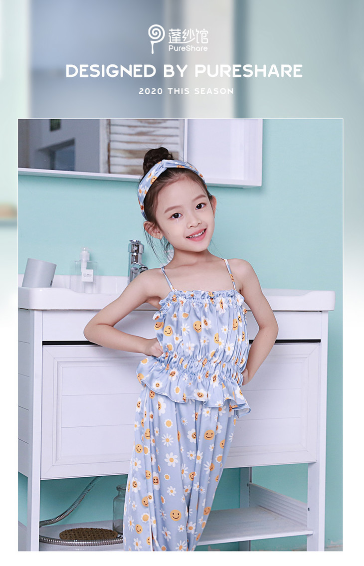 pureshare女童居家服套装4件套年秋款家居服保暖休闲可爱-秋日花卉四件套