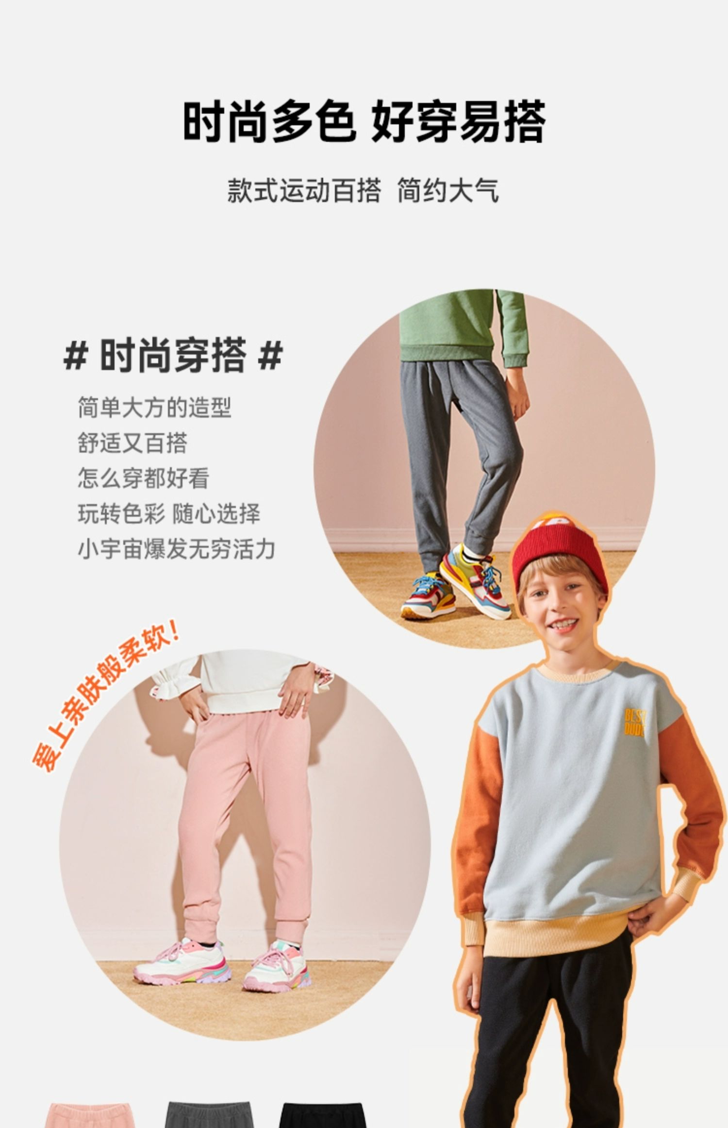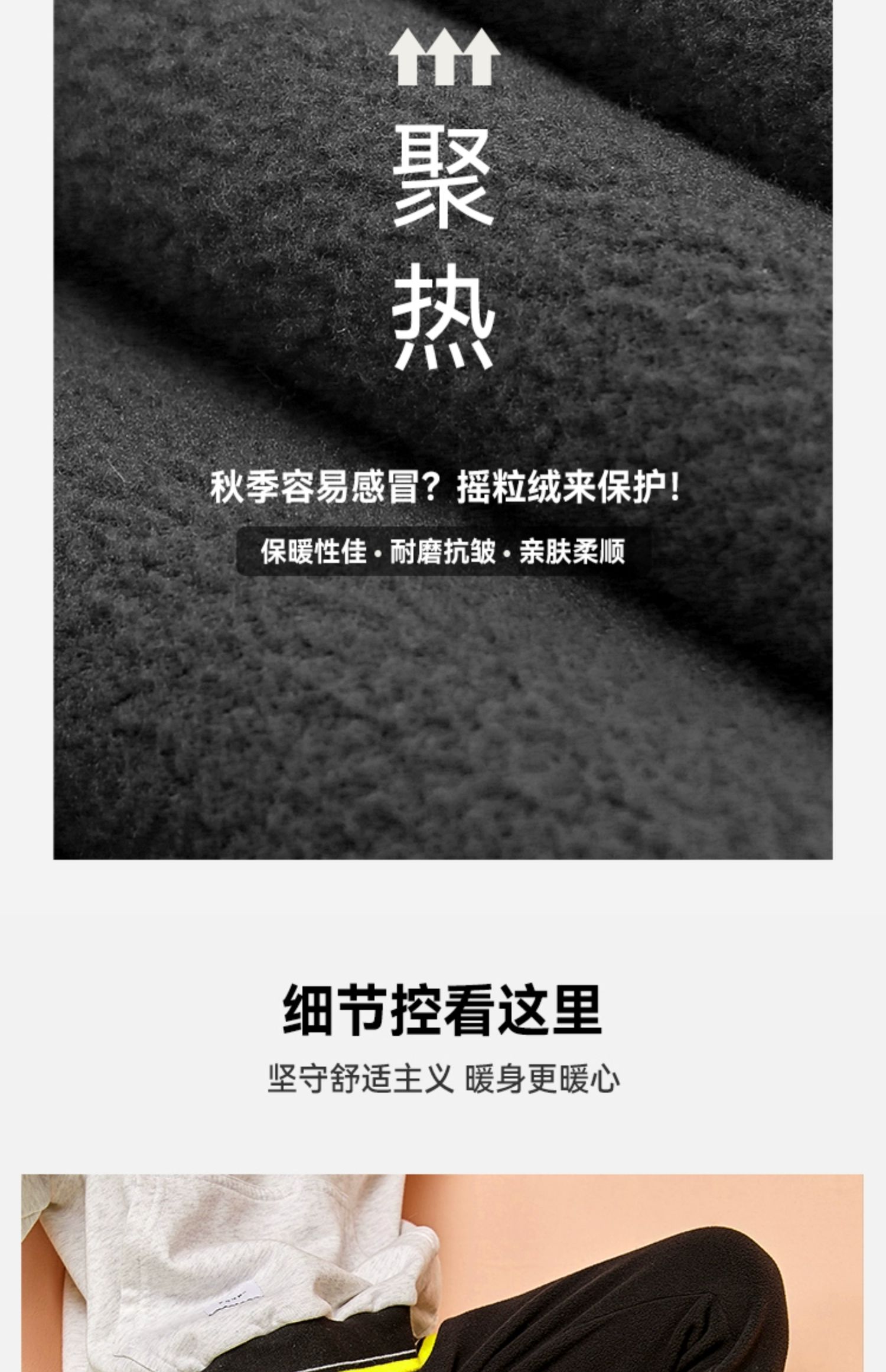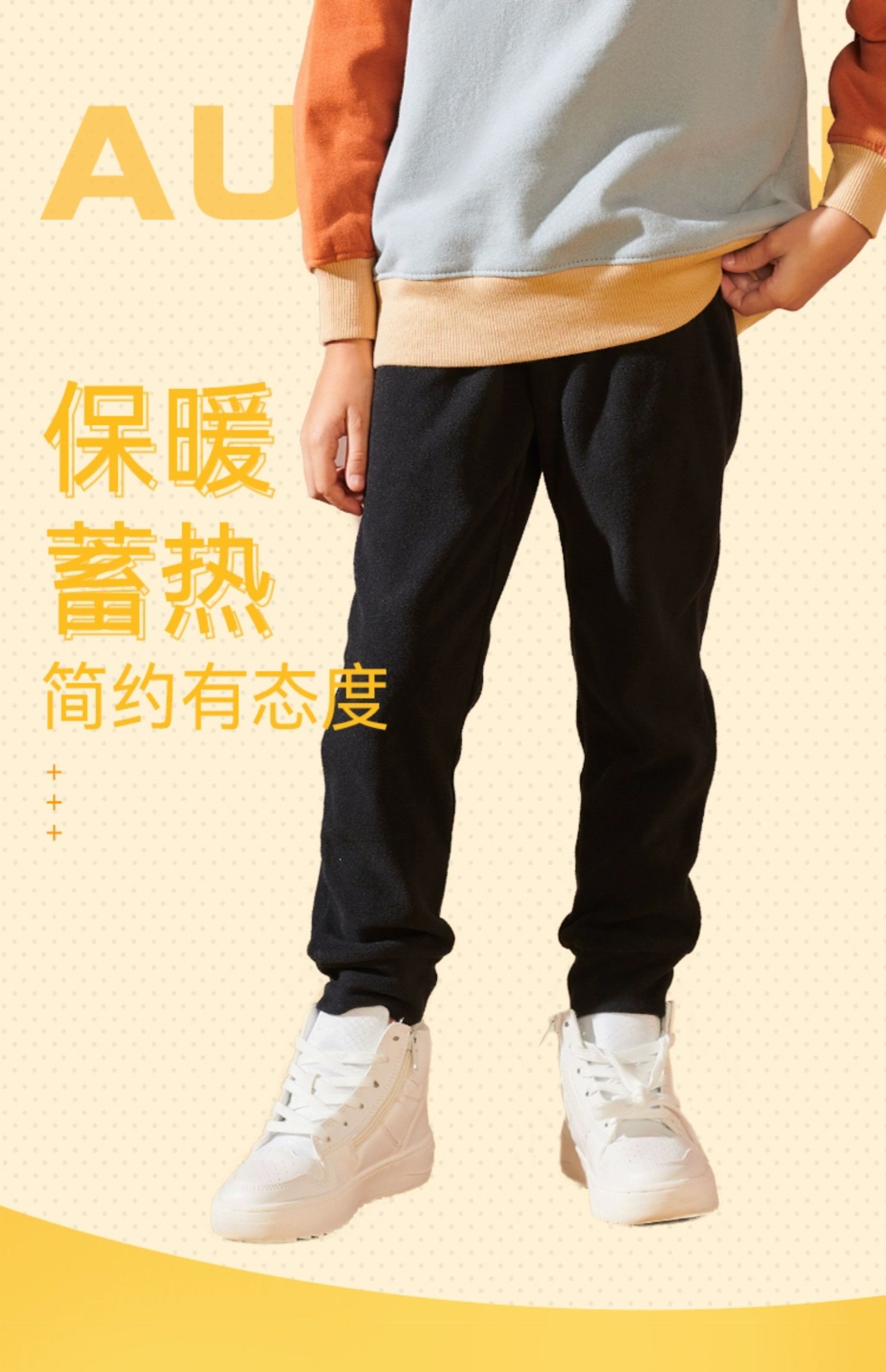 伯希和户外休闲裤儿童耐磨运动卫裤亲肤摇粒绒长裤防风抓绒休闲裤
