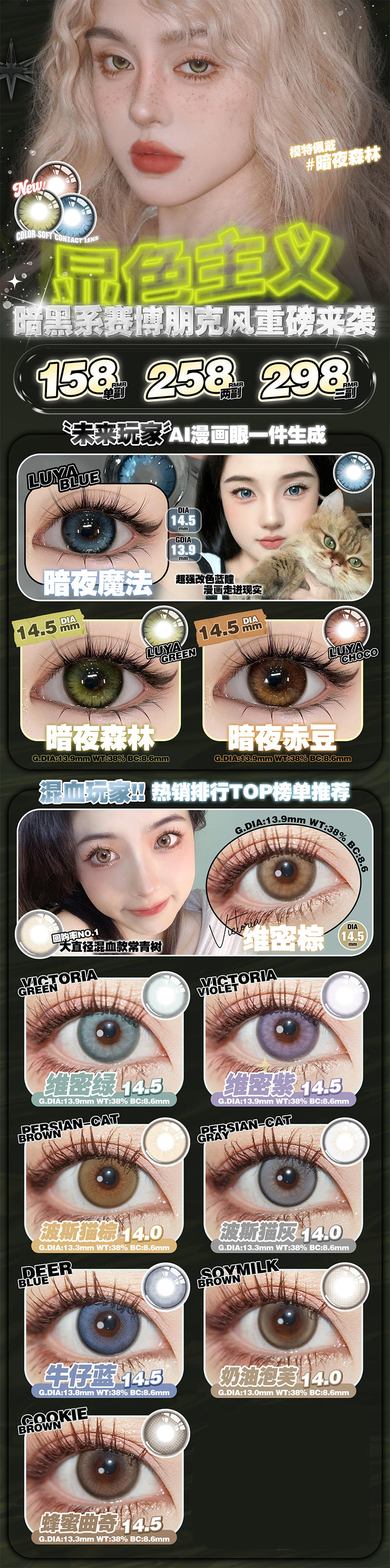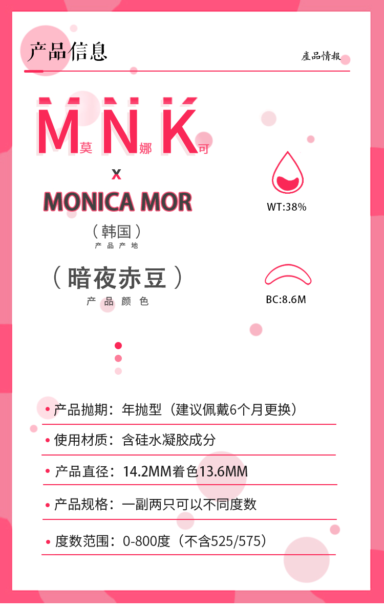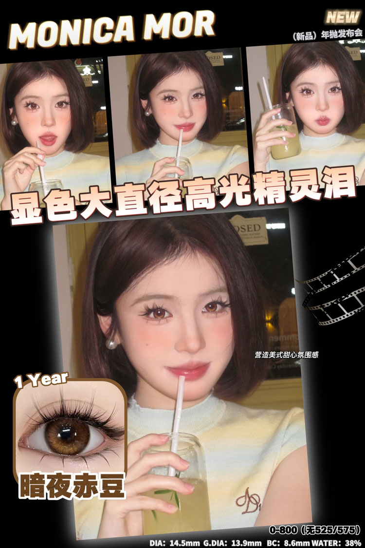 MONICA MOR 美瞳年抛 暗夜赤豆 标注直径14.5/实际直径14.2mm着色13.6mm