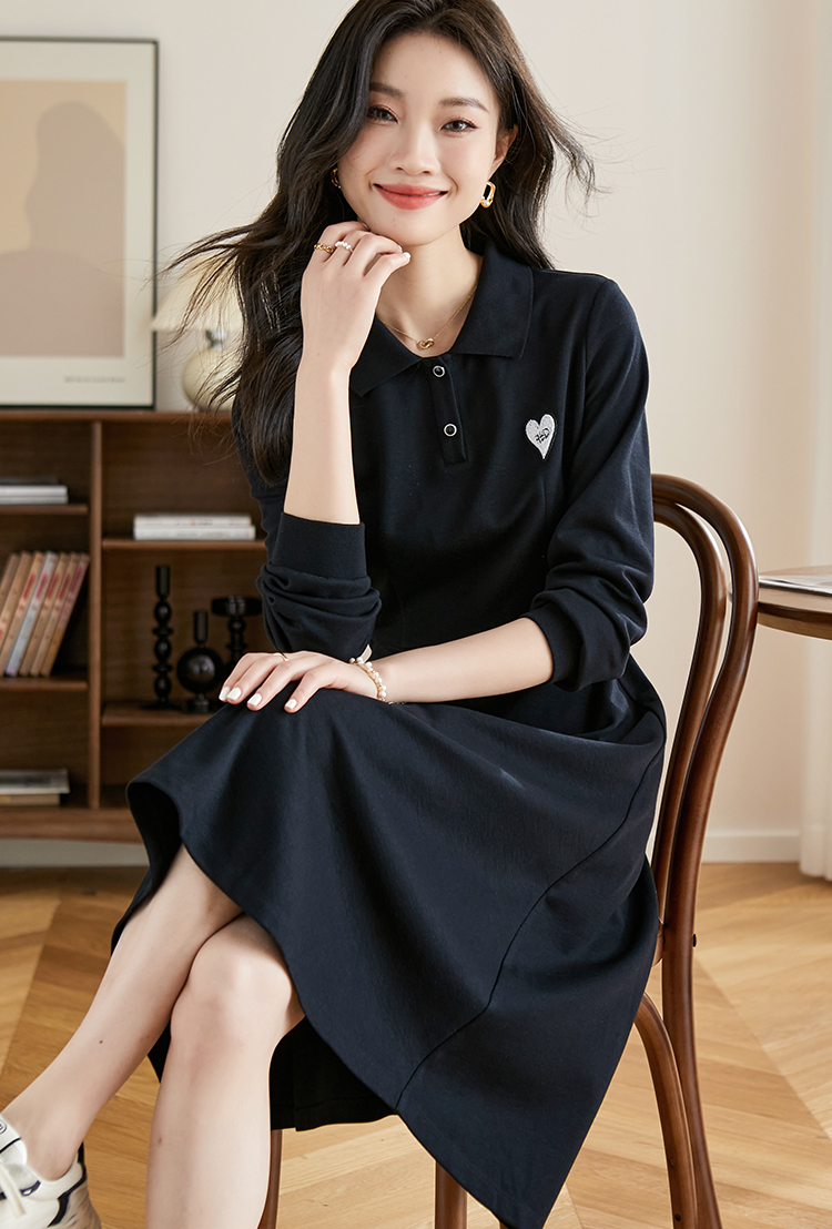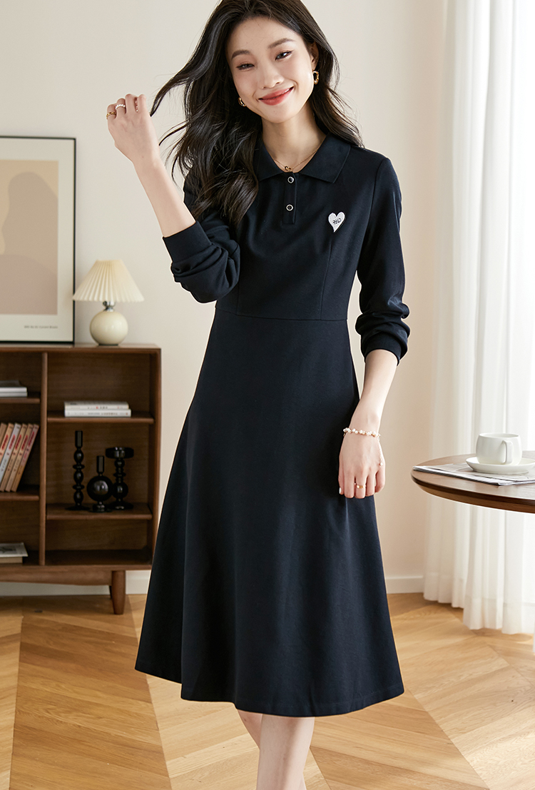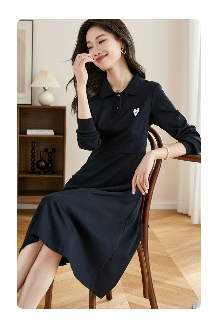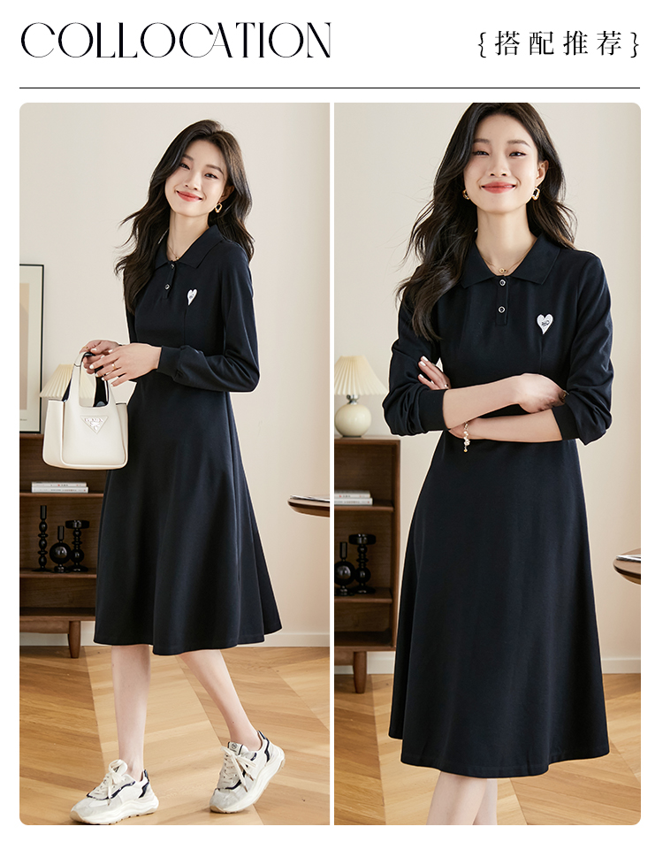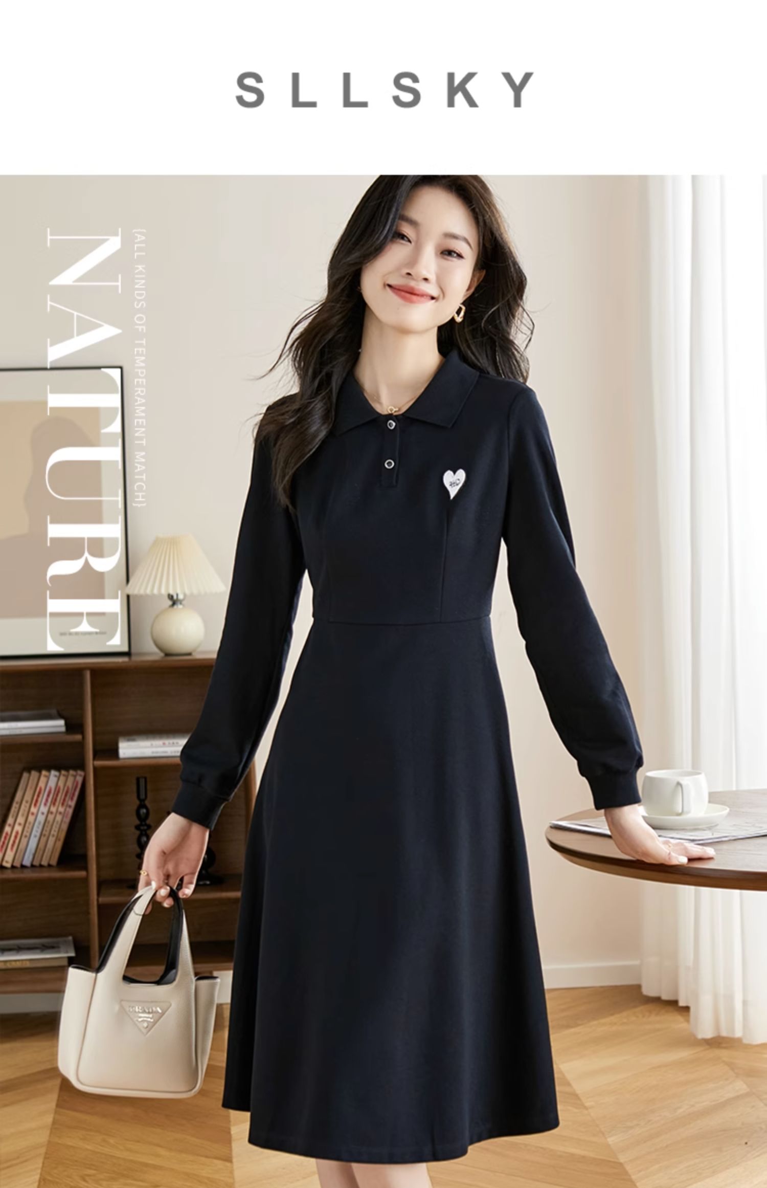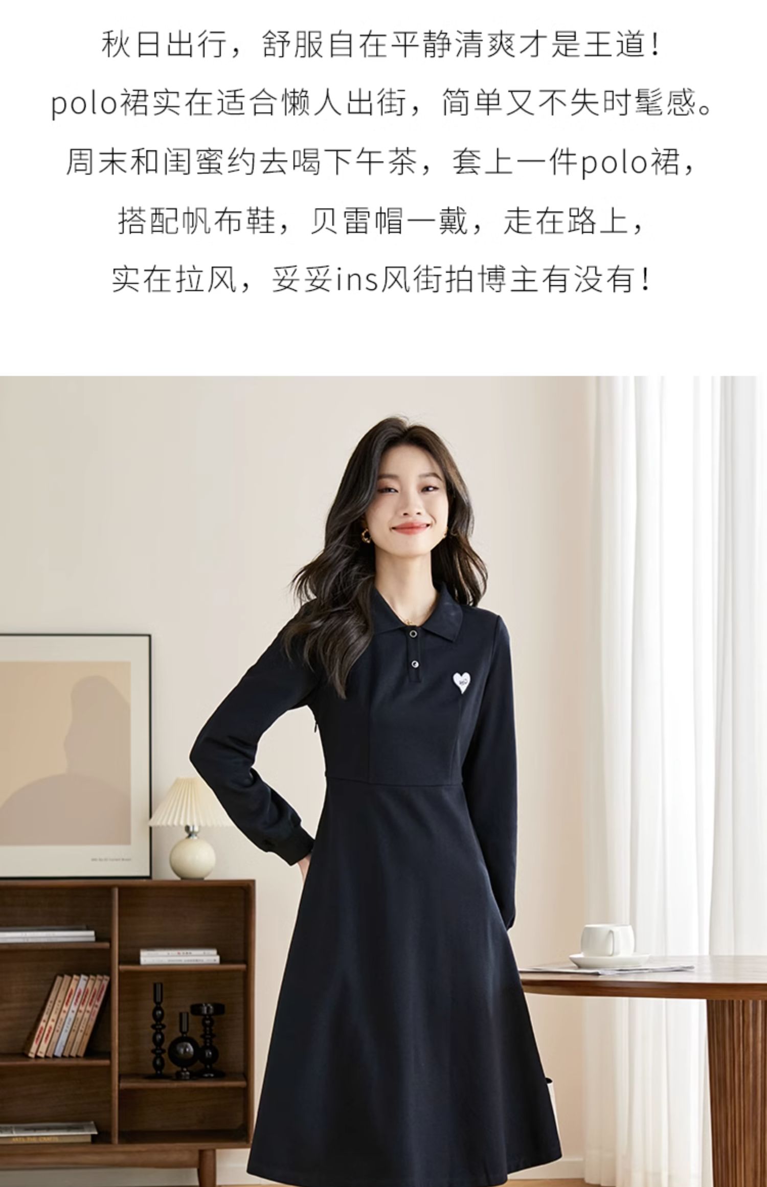【1件62折】熙世界polo连衣裙女长袖2025秋新款小个子减龄收腰显瘦休闲裙子
