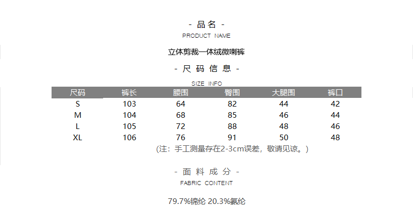 立体剪裁一体绒微喇裤(一口价)