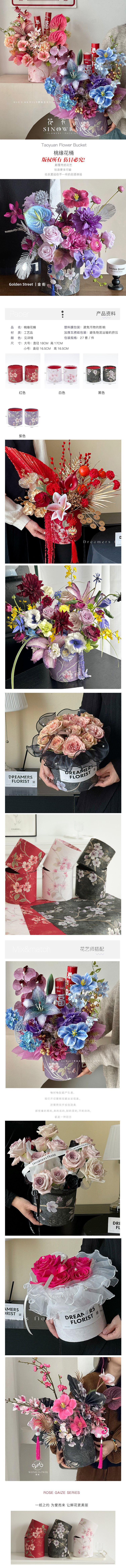 年宵福桶 喜庆桃缘花桶 套二
