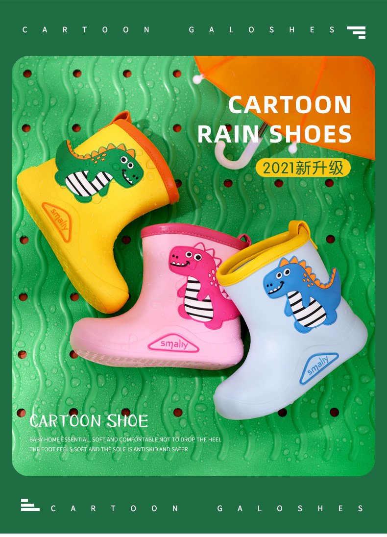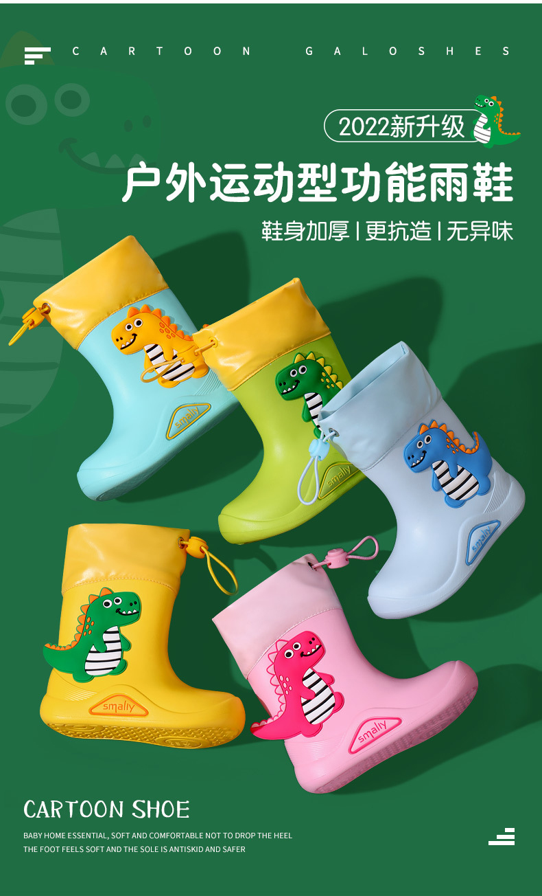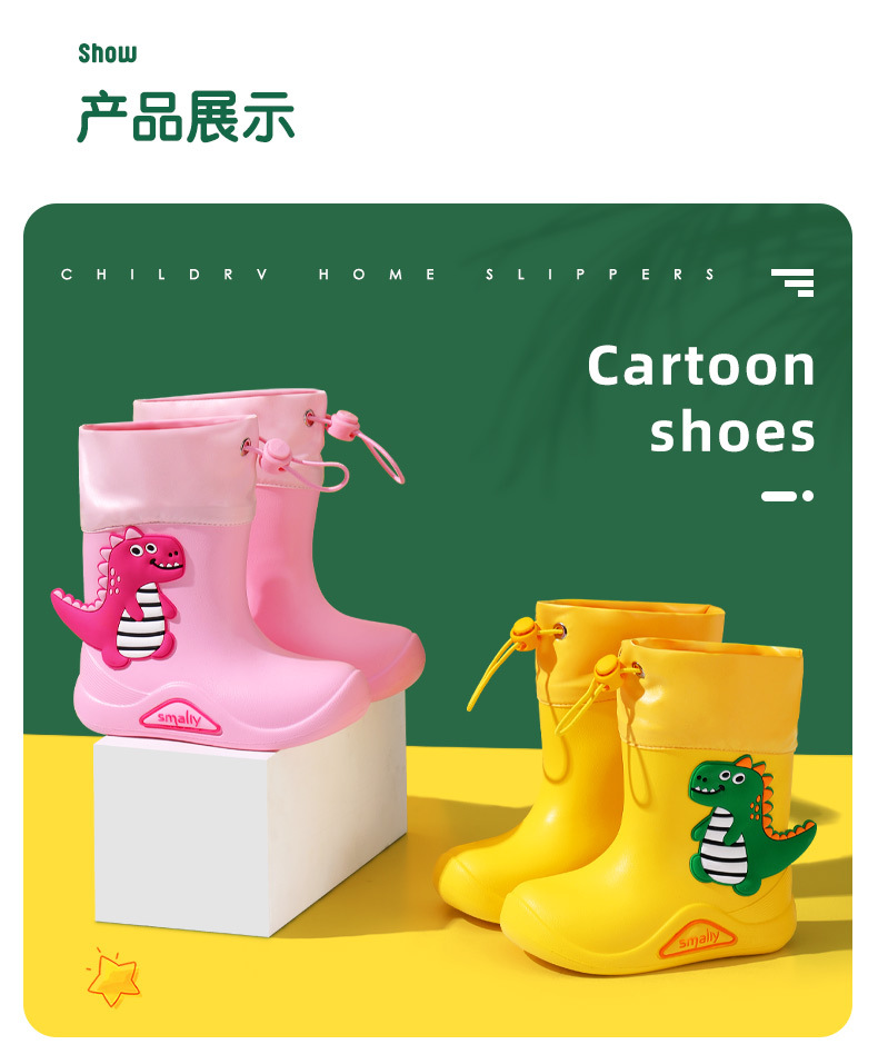 【萌系束口式雨鞋】Smally儿童户外运动功能性雨鞋 立体卡通大图案宝宝雨靴 加大筒口 穿脱方便