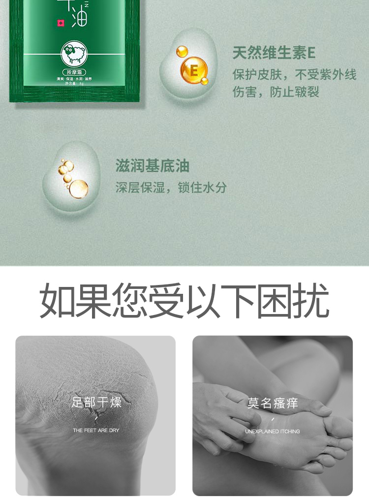 【防裂保湿】佰芳源绵羊油袋装按摩膏足部一次性蛇油膏免洗足疗膏足浴按摩油