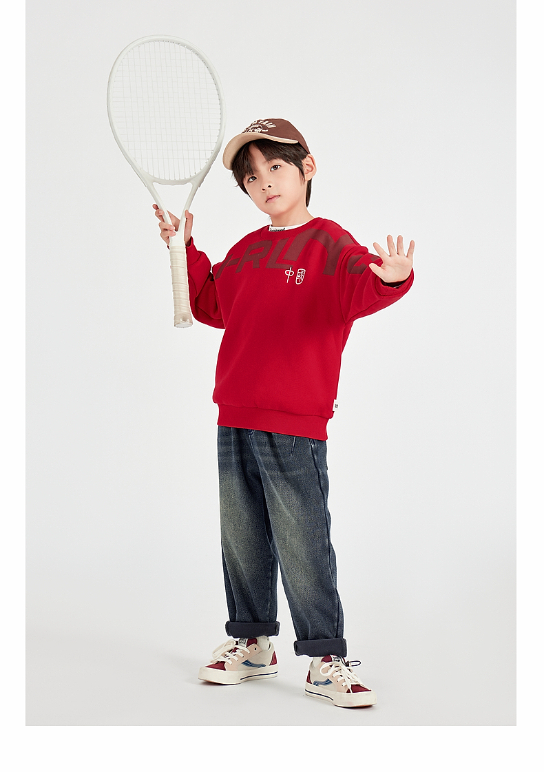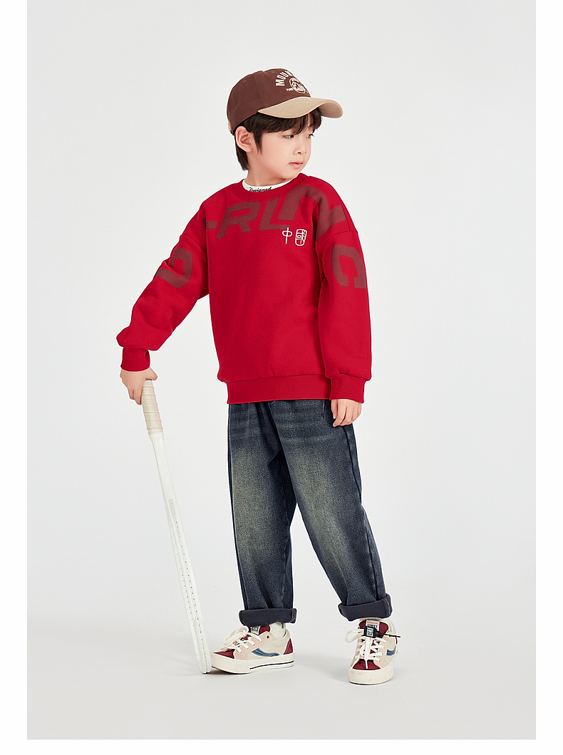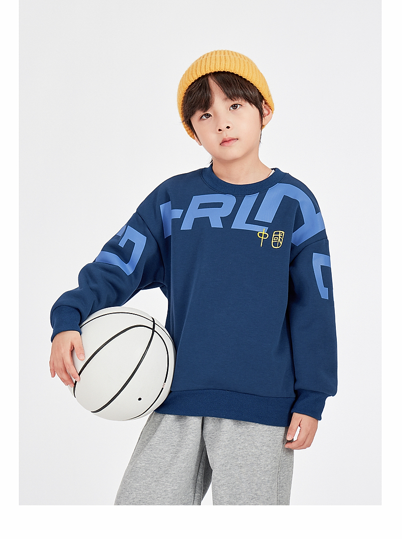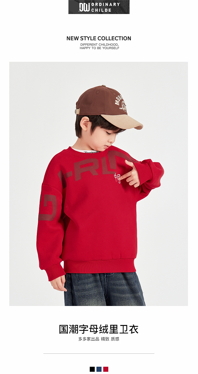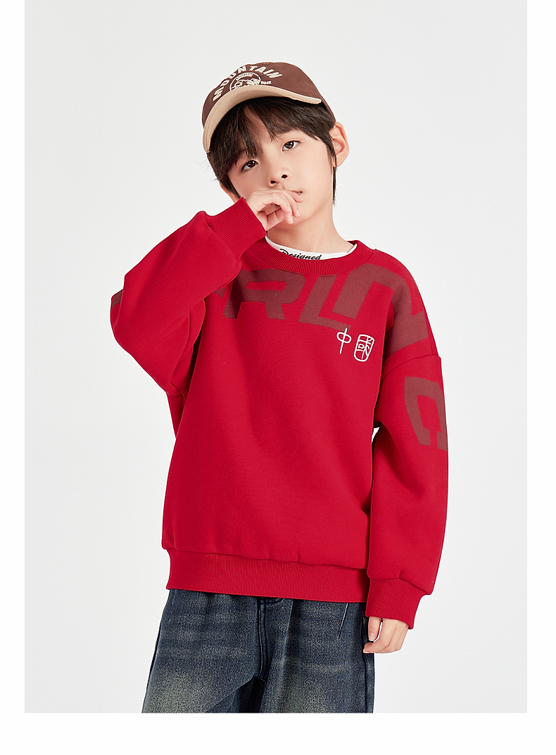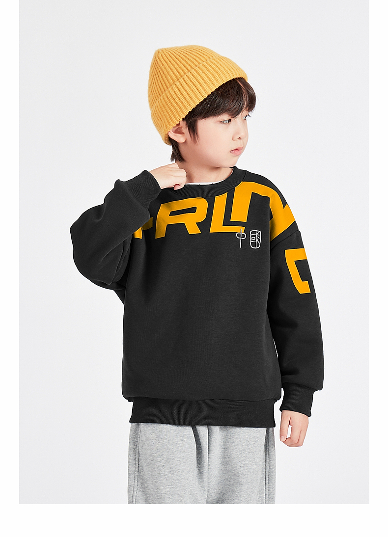 【团购价49.9-59.9】多多家男童加绒卫衣秋冬款2024新款儿童中大童冬装一体绒印花上衣9839