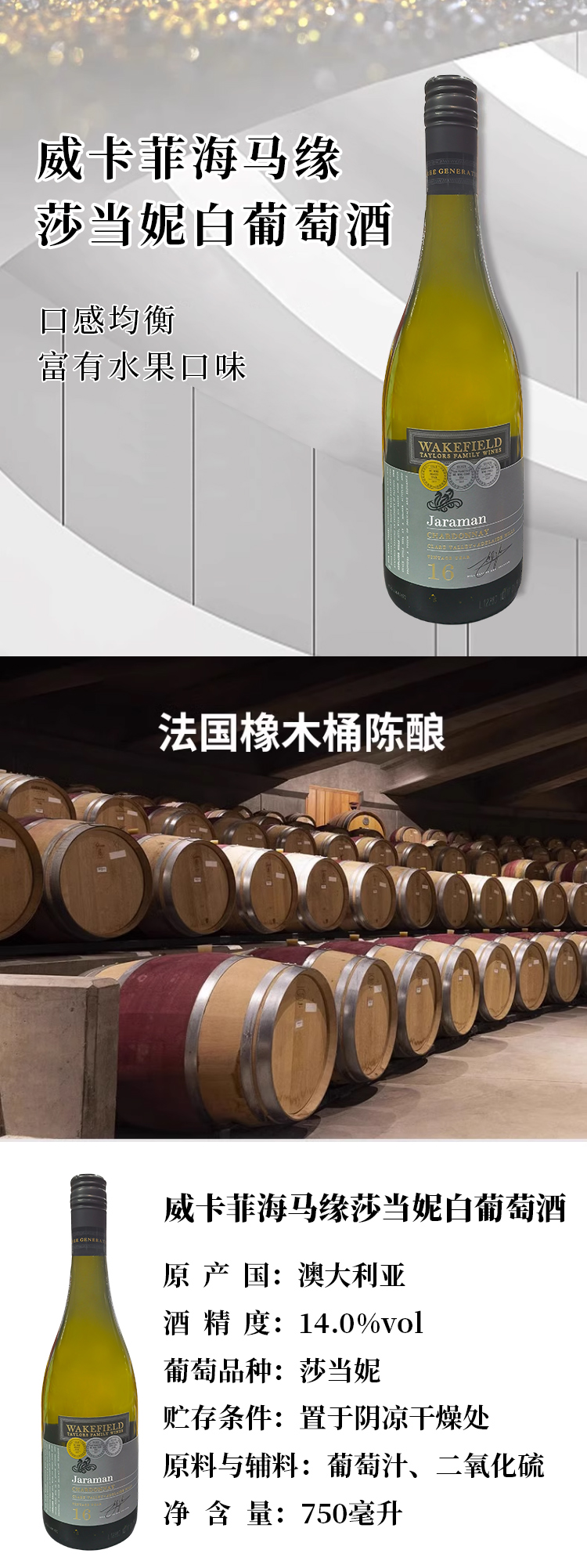 澳大利亚进口威卡菲海马缘莎当妮白葡萄酒750ml