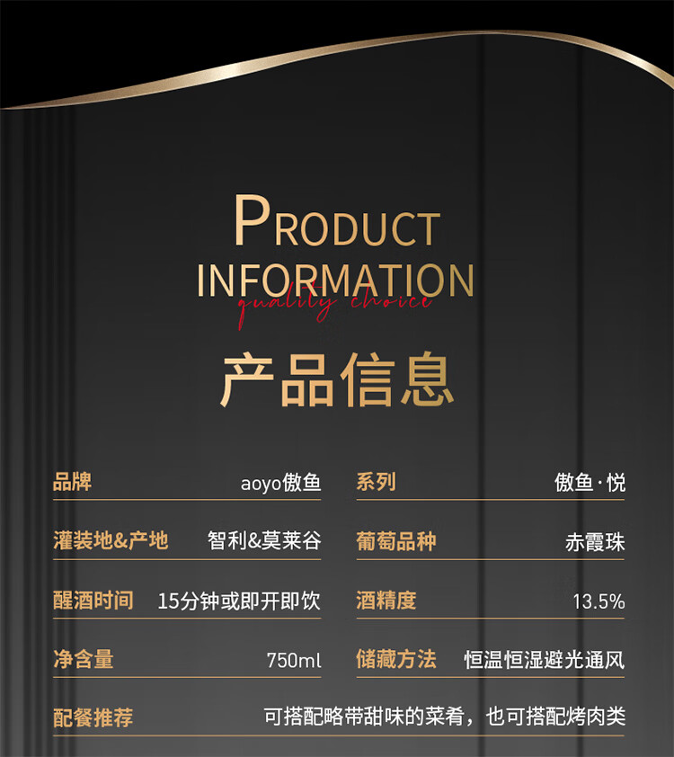 傲鱼悦赤霞珠半甜红葡萄酒750ml