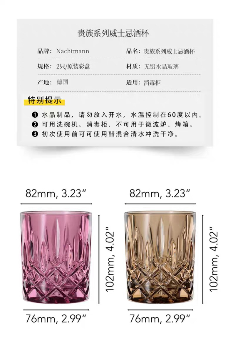 NACHTMANN德国进口威士忌酒杯高级感轻奢高档彩色水晶洋酒杯套装