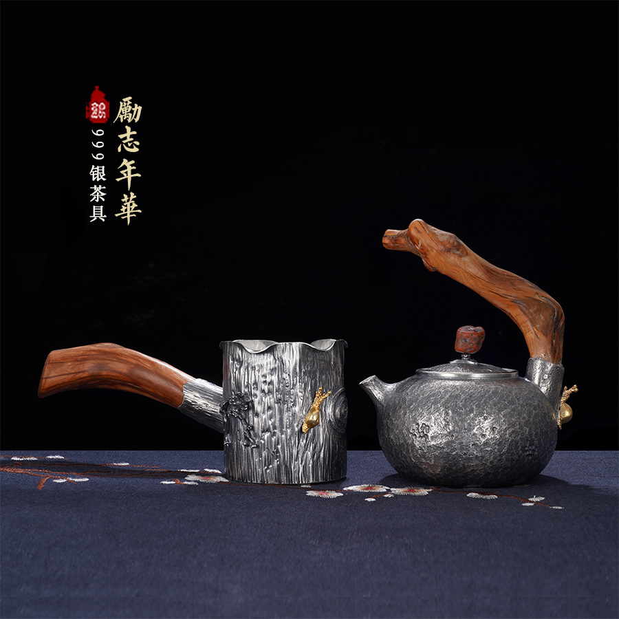 子佩集S999银【励志年华】小茶壶公道杯摆件茶具套装【TG001】【TG002】2312