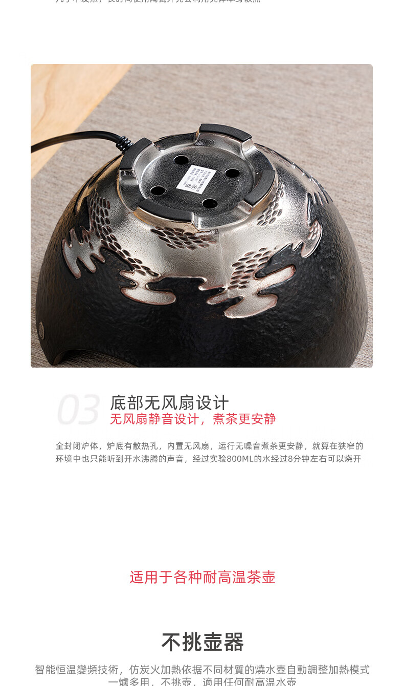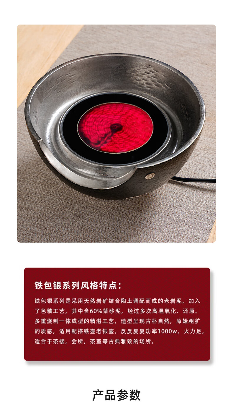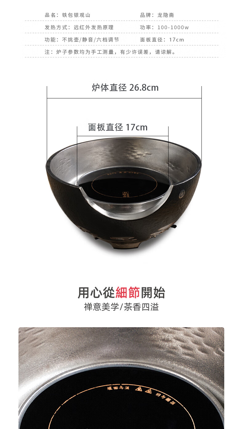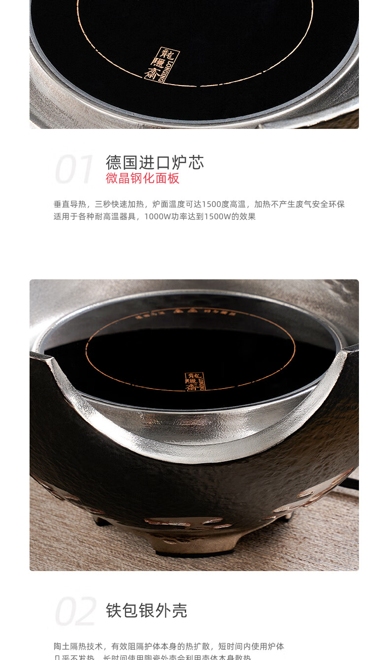 龙隐斋【铁包银】观山静音电陶炉煮茶 1000W大功率德国炉芯可定时 单炉