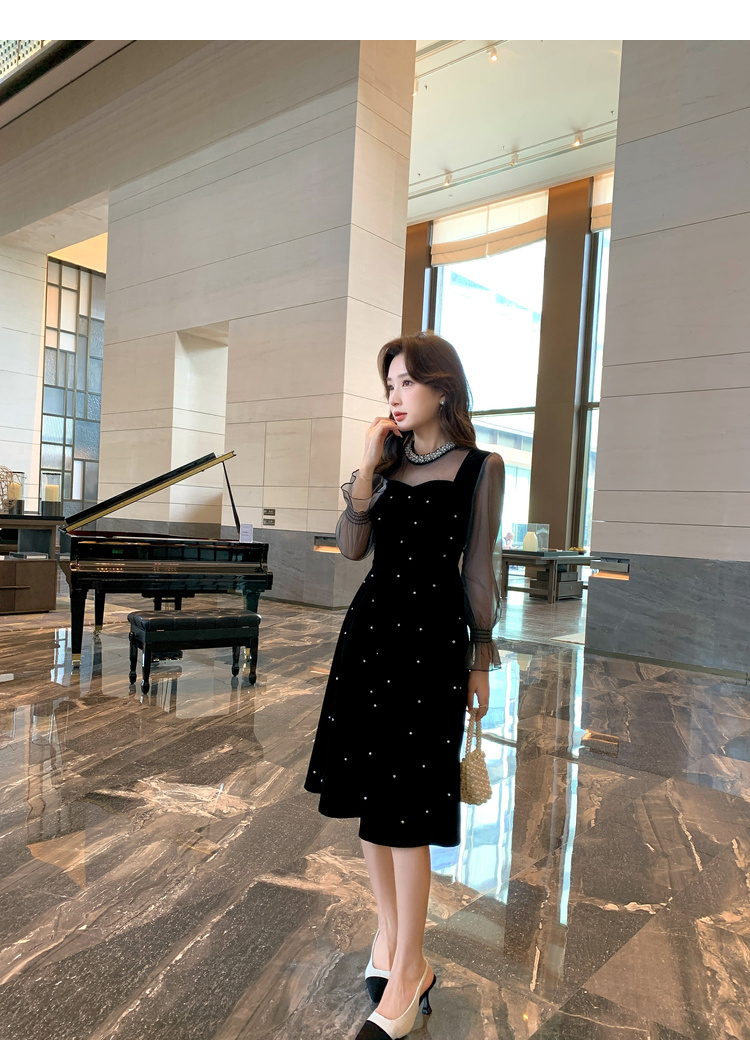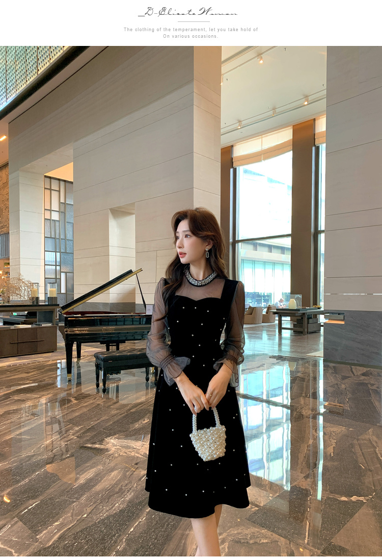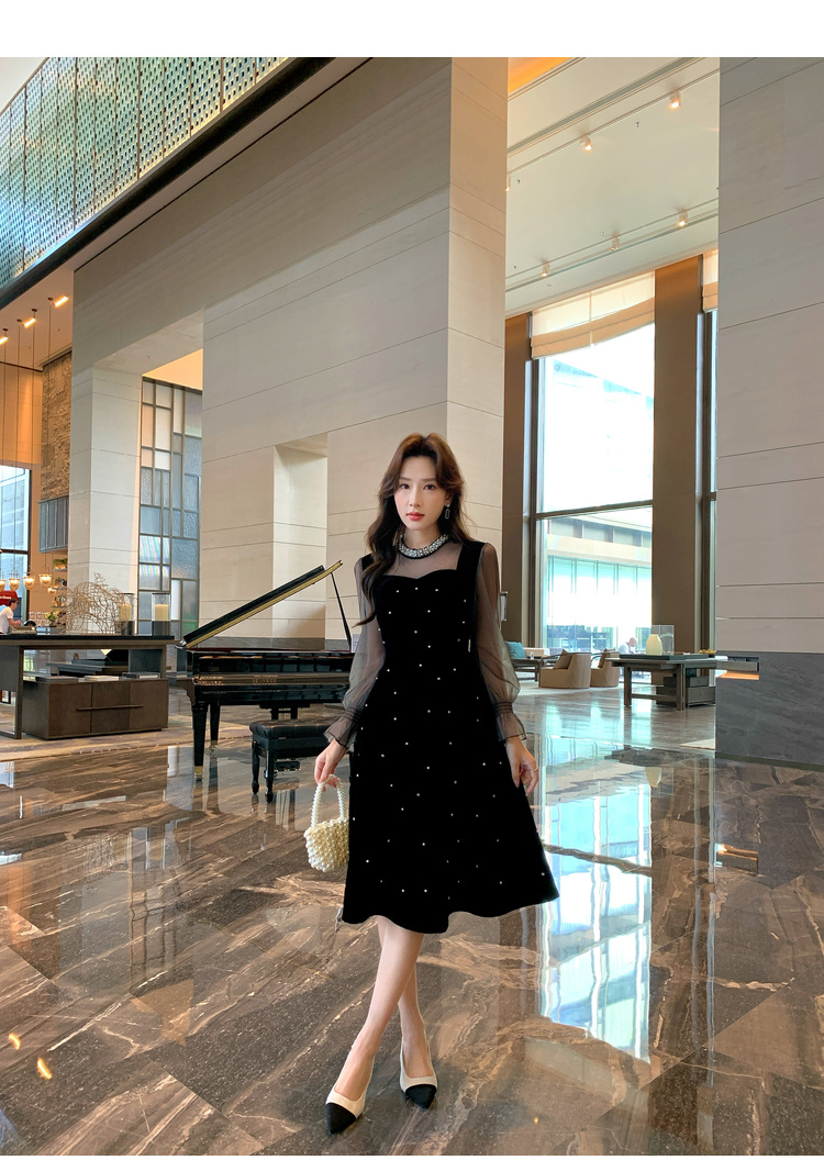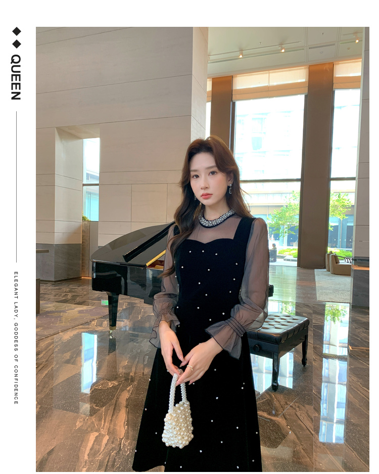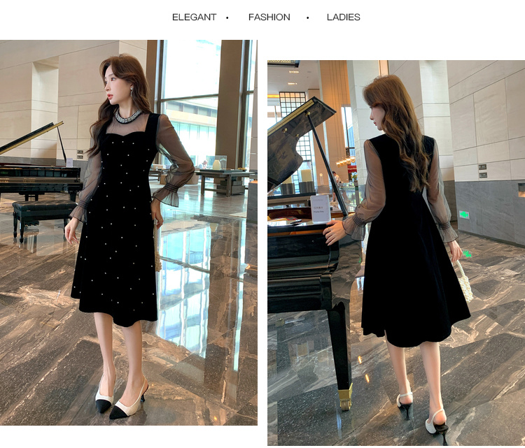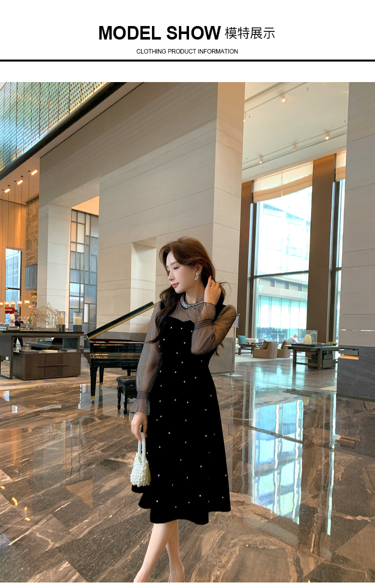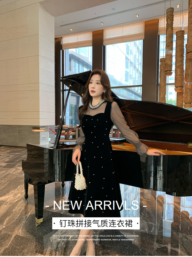 奢姿2025年秋季新款大码女装钉珠立领裙子胖妹妹拼接气质连衣裙9943860342