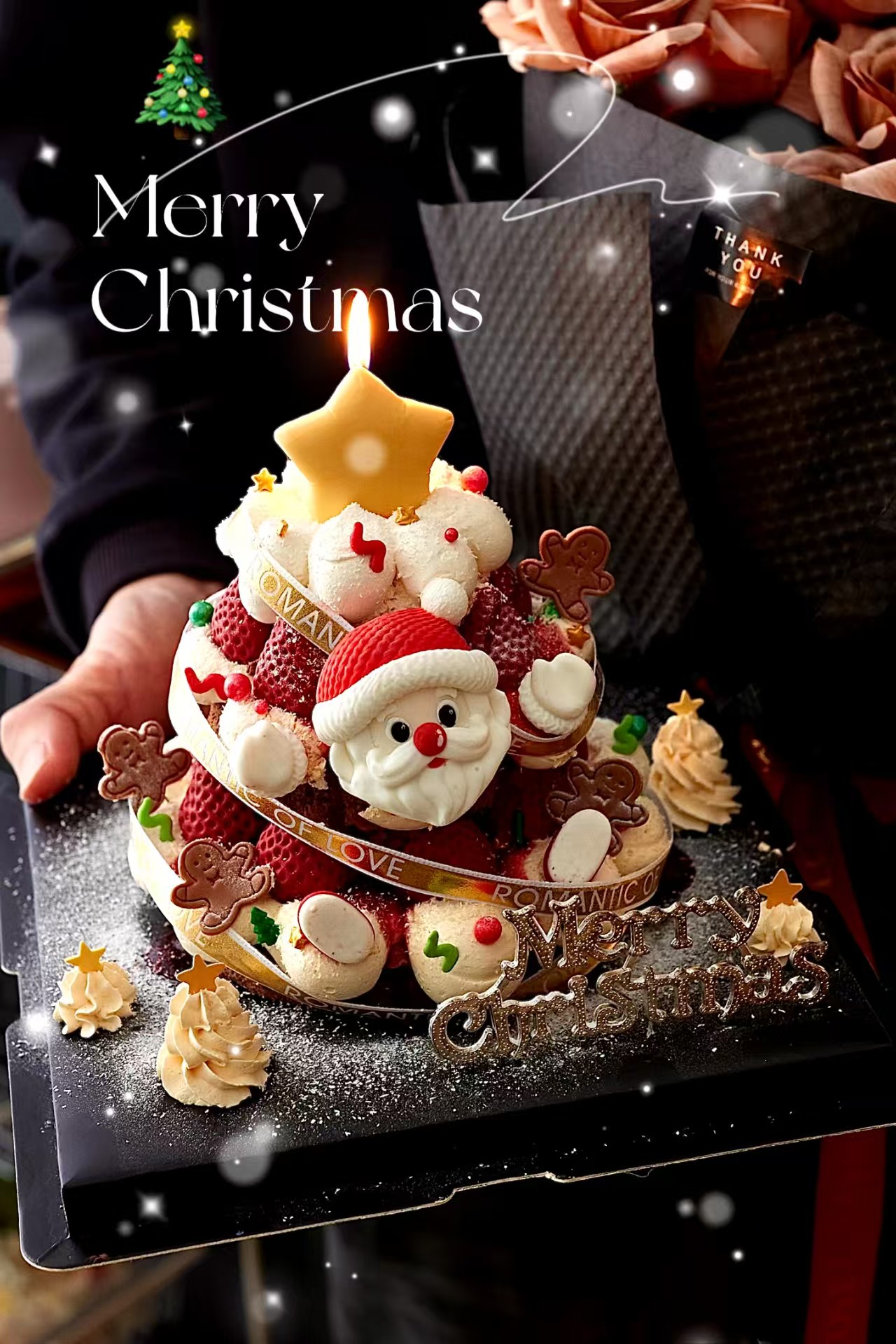 【圣诞老人特别版】-翻糖造型-新鲜水果蛋糕