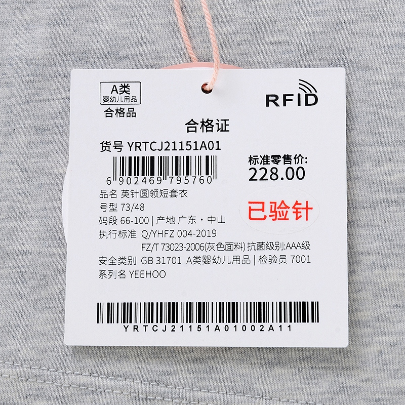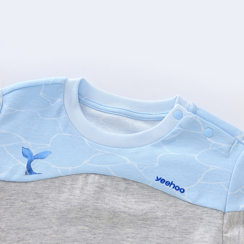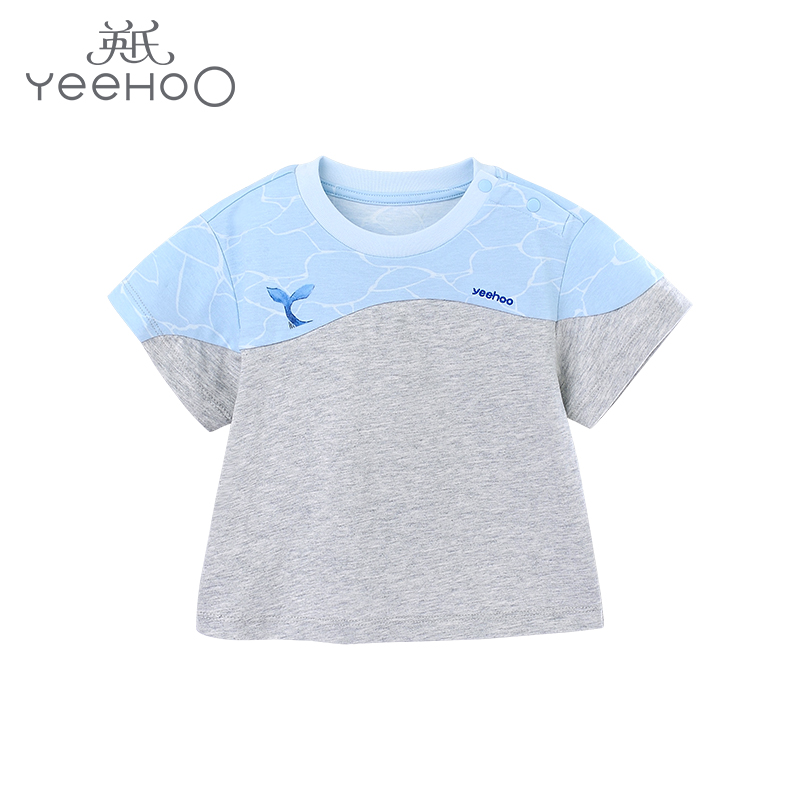 英氏-童衣类(夏)E1外着英针圆领短套衣花灰100C
