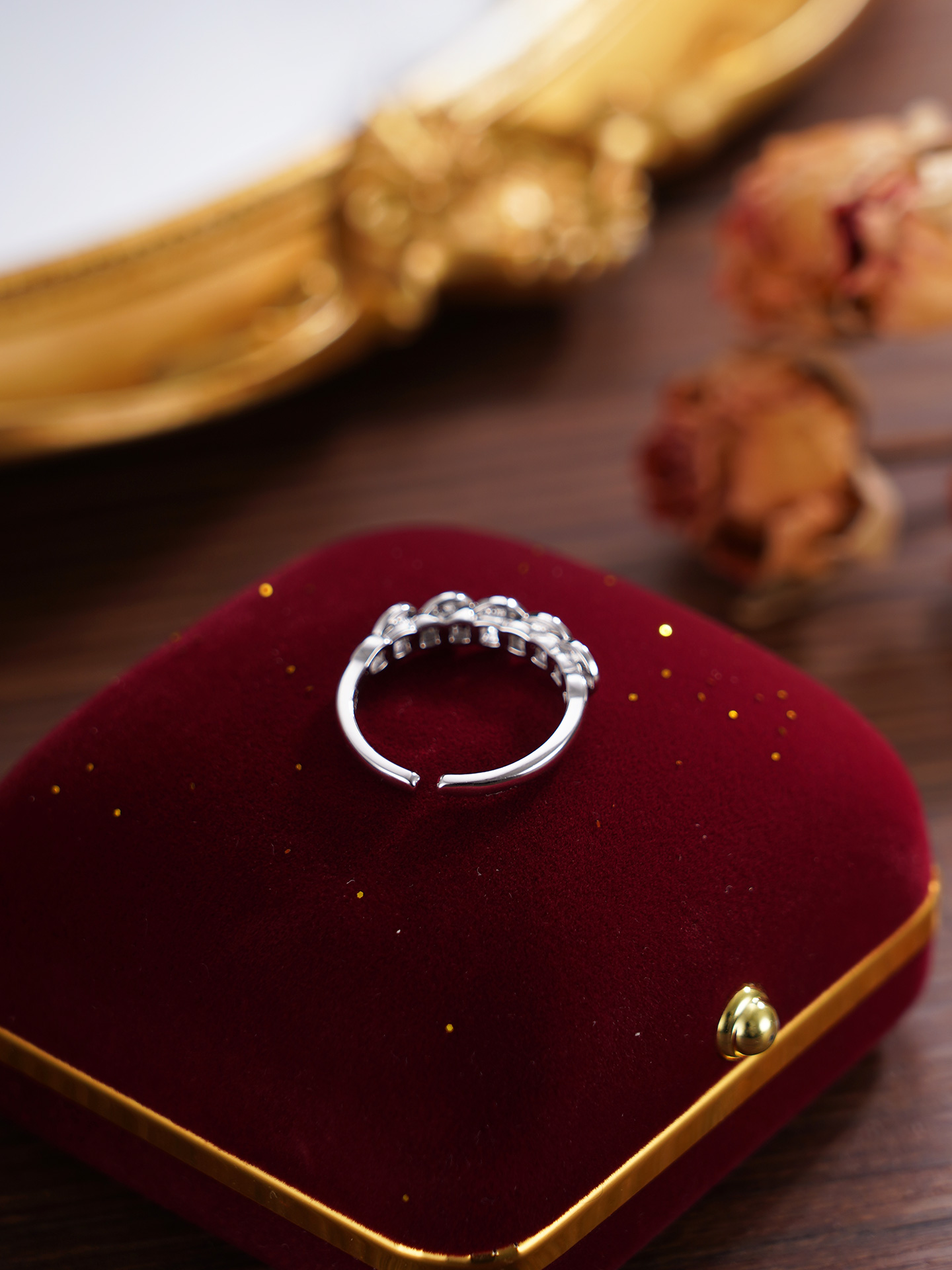 【寓意】:五帝钱被认为具有强大的庇护和加持力量。戒指采用五枚铜钱堆叠设计,取名“财运连连”,寓意财源络绎不绝,一生平安健康。
