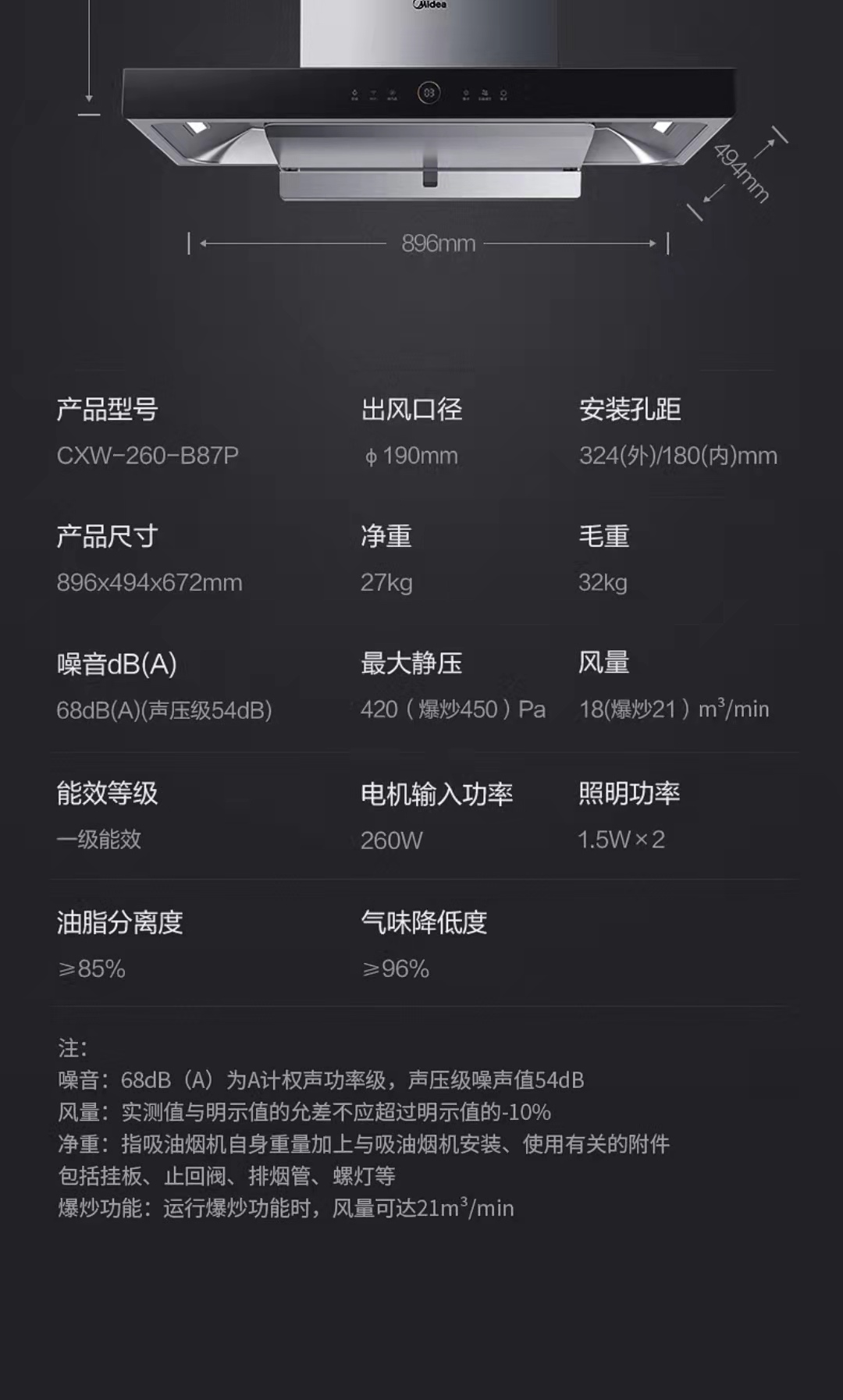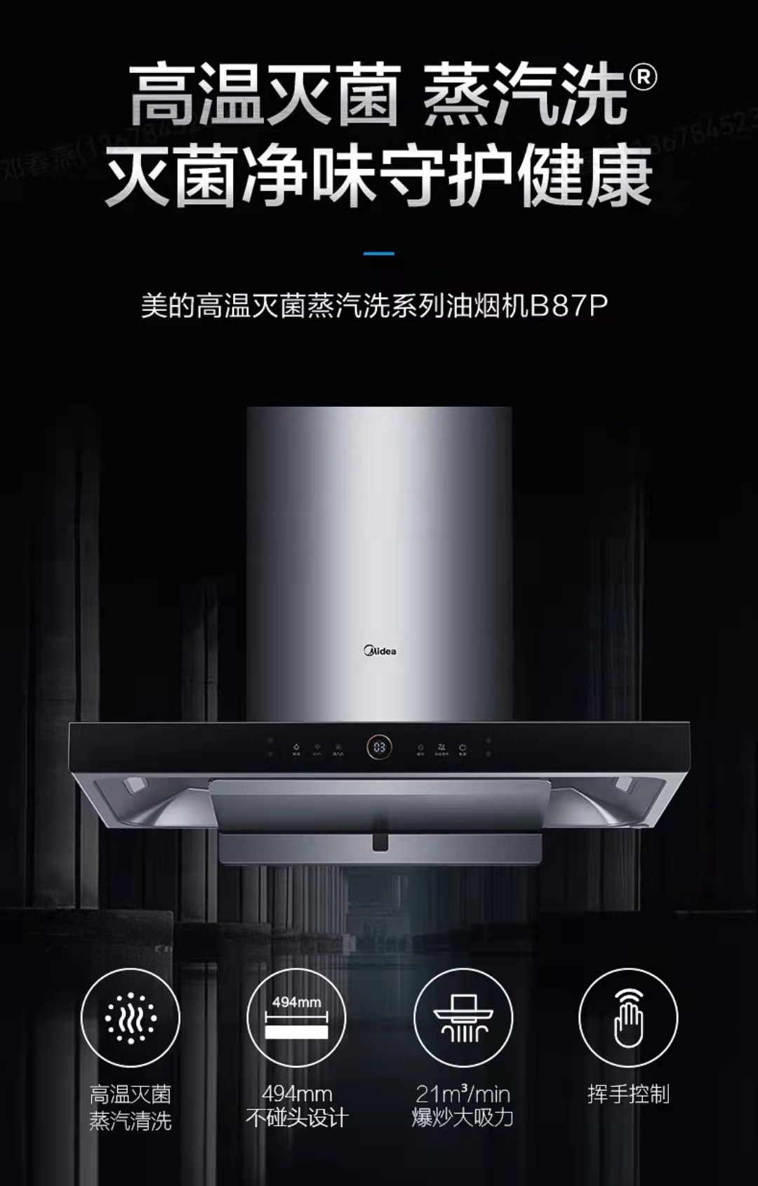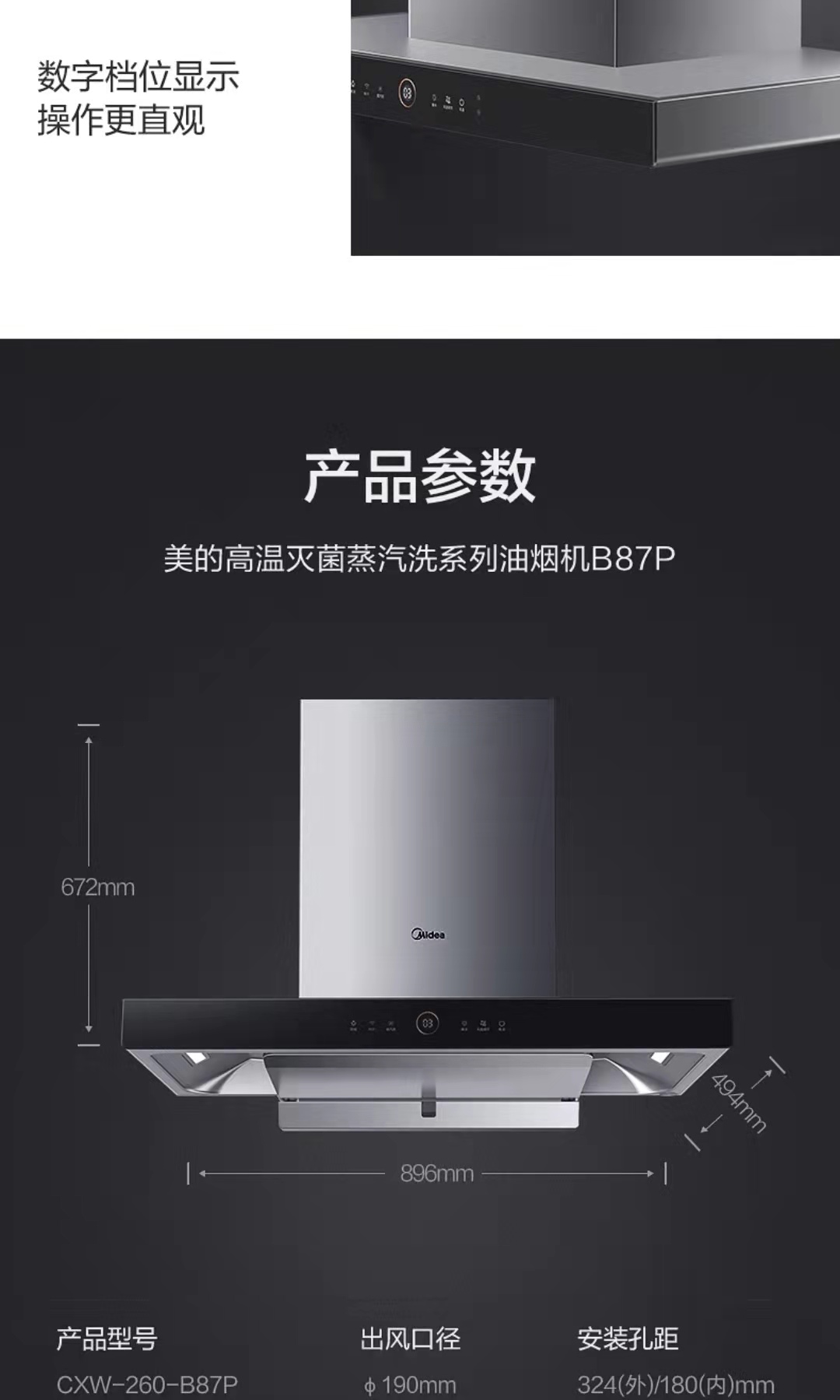 美的(Midea)家用吸油烟高温蒸汽洗欧式T型抽油烟触摸顶吸易清洁排烟 蒸汽洗欧式T型 CXW-260-B87P