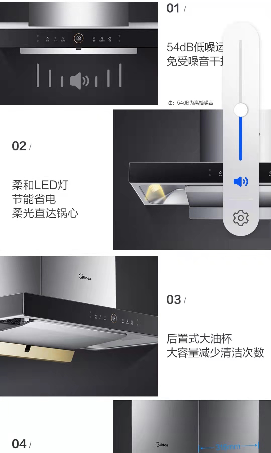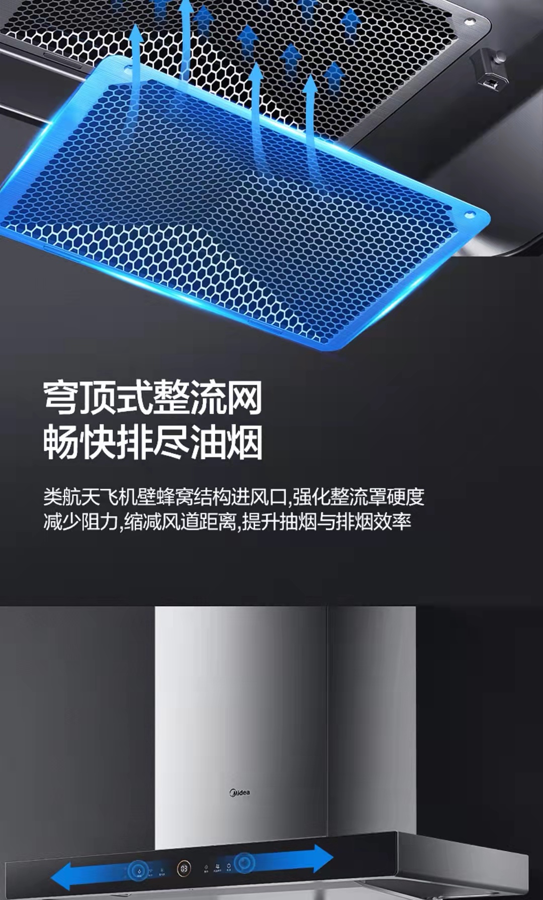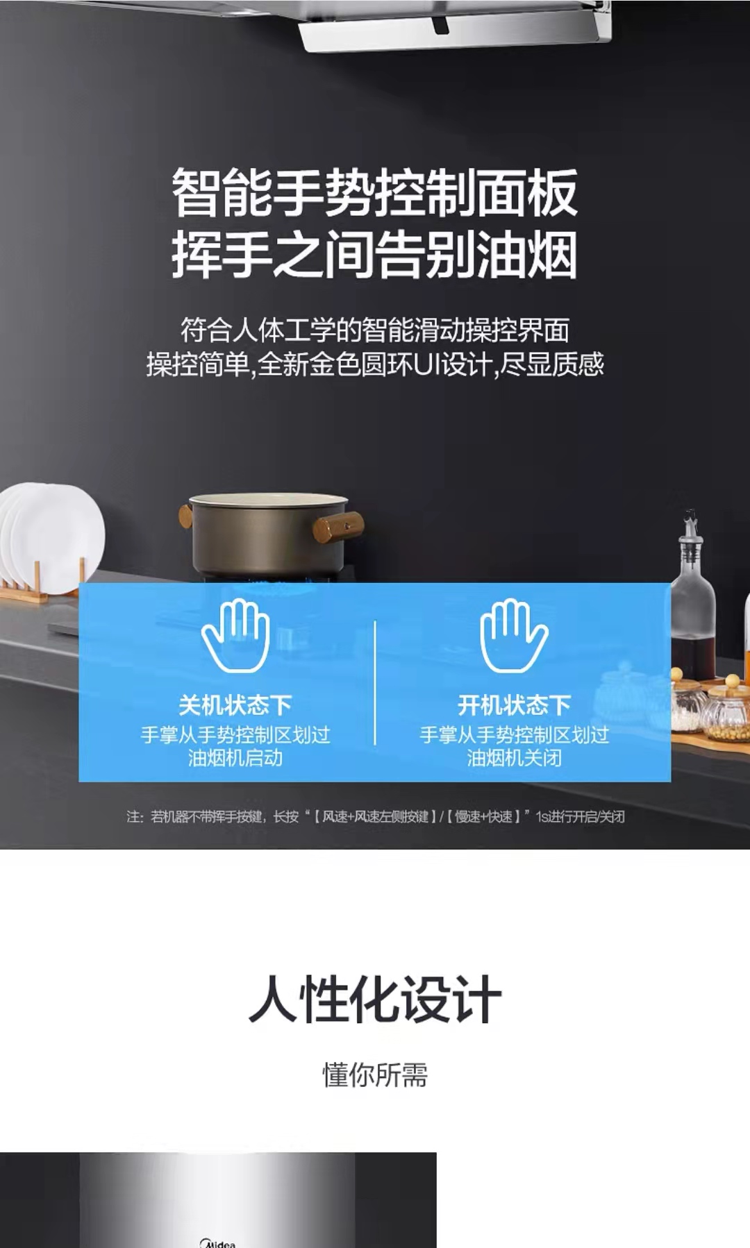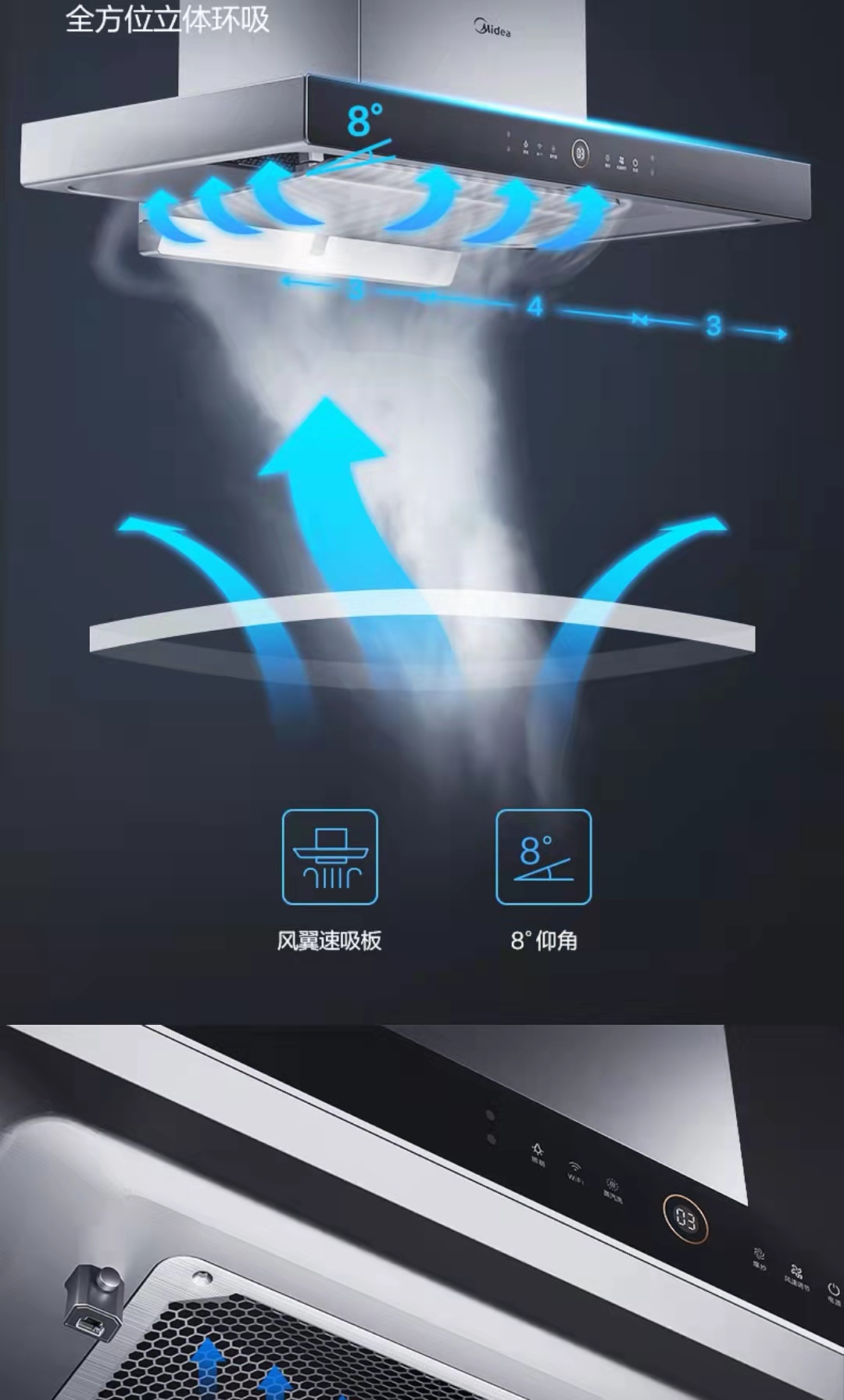 美的(Midea)家用吸油烟高温蒸汽洗欧式T型抽油烟触摸顶吸易清洁排烟 蒸汽洗欧式T型 CXW-260-B87P