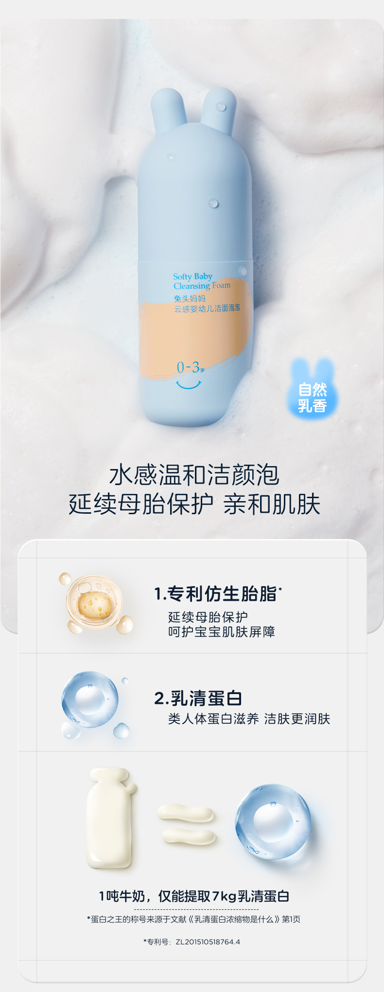 兔头妈妈 云感婴幼儿洁面泡泡 90ml