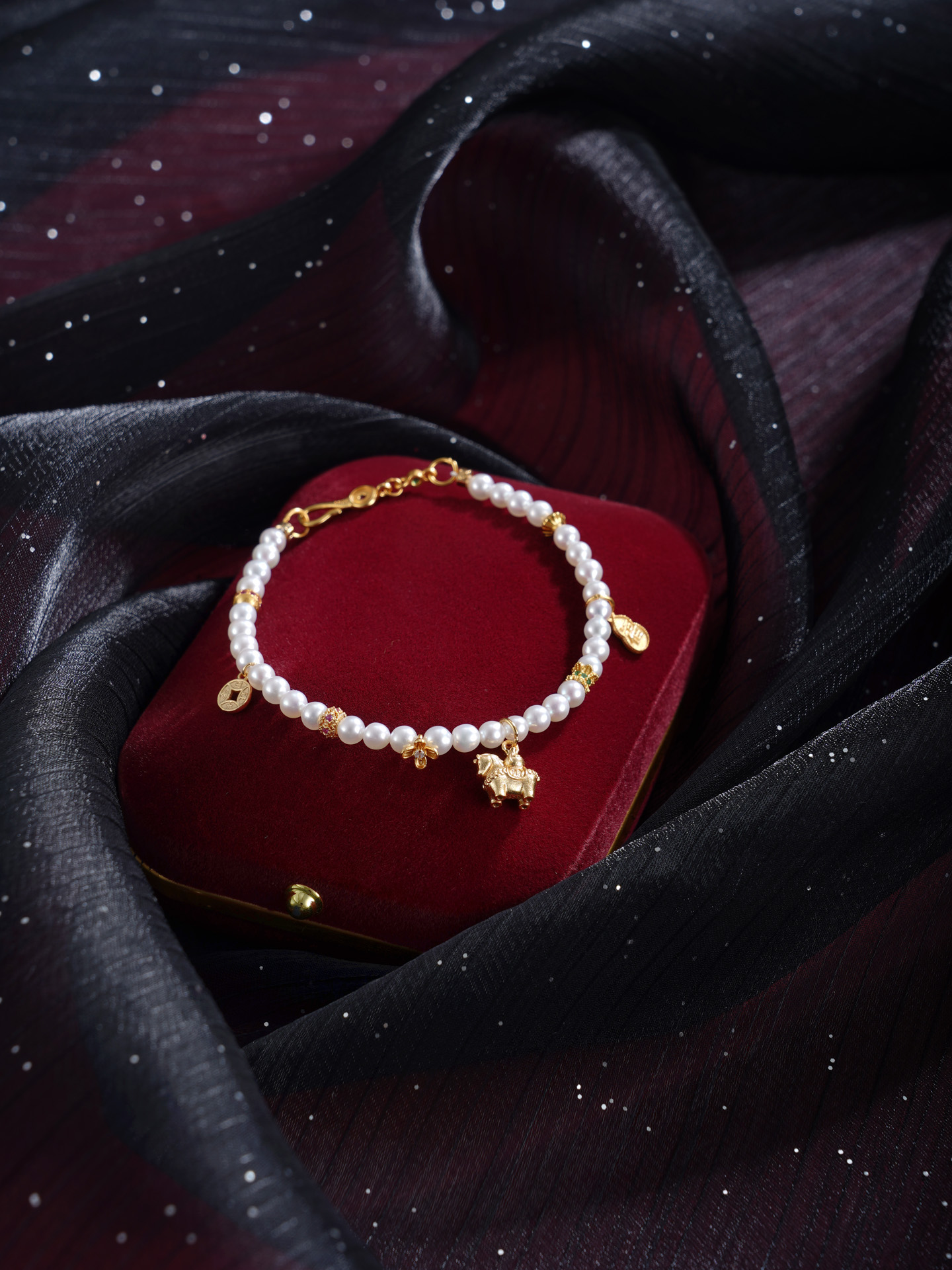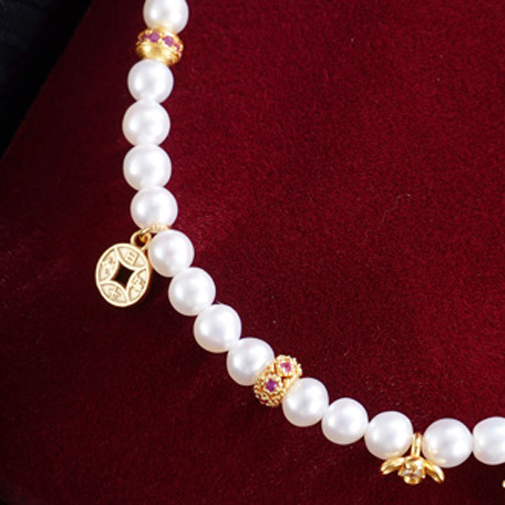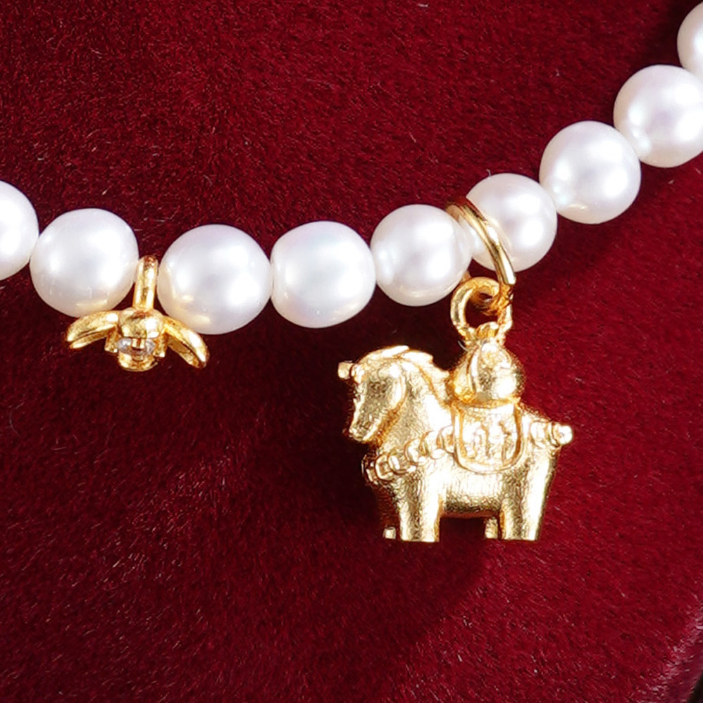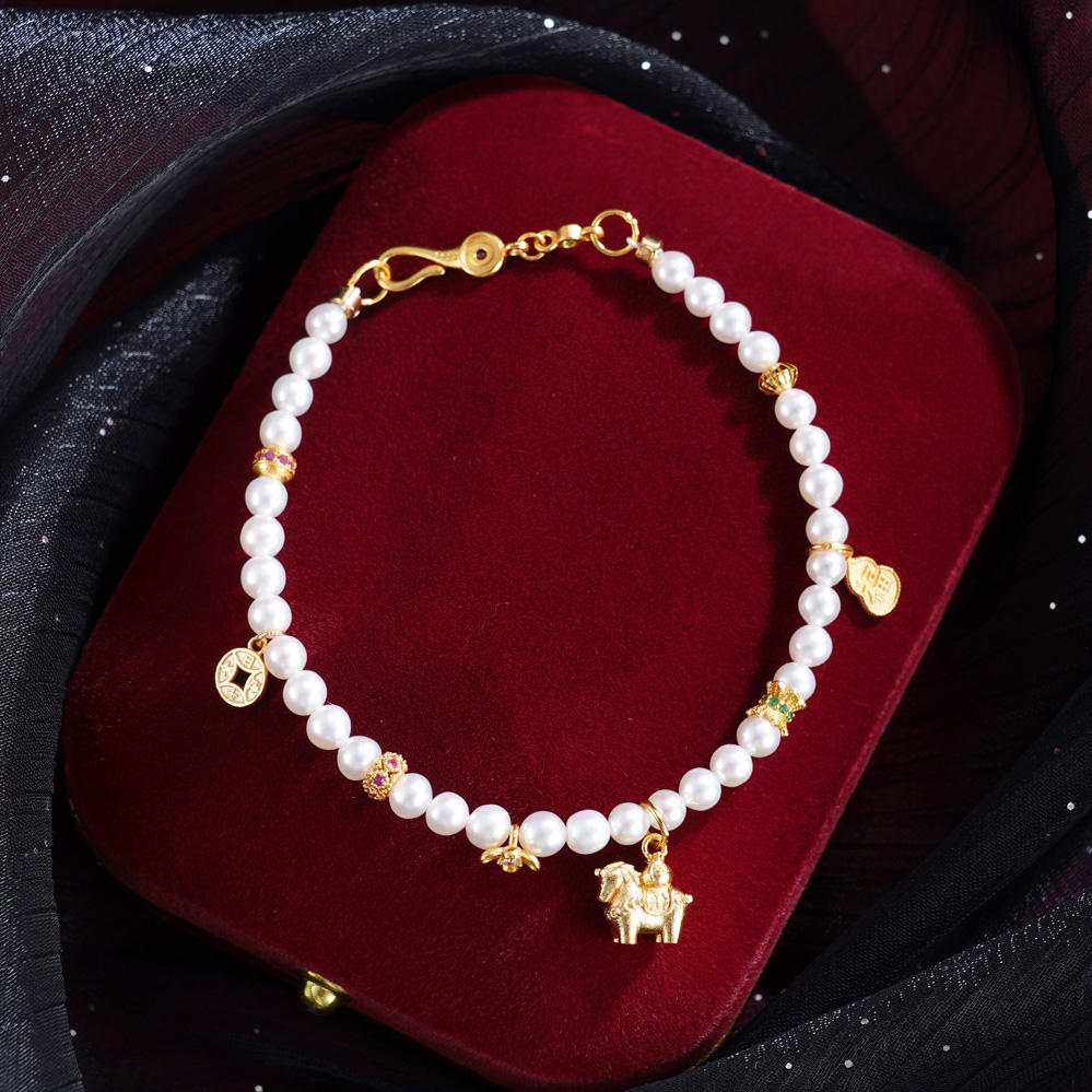 子佩集【马上幸福】银S925珍珠惜王妃手链【QJSL003】镀金小马钱币葫芦2602