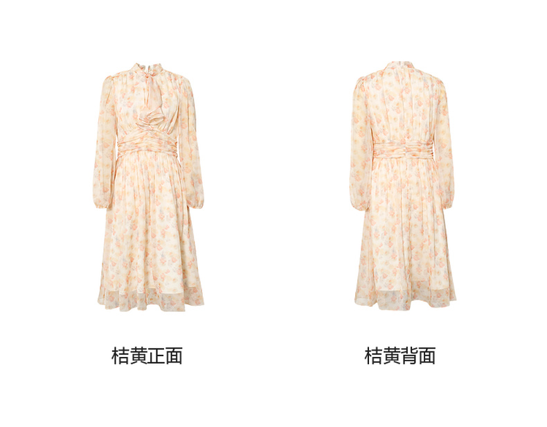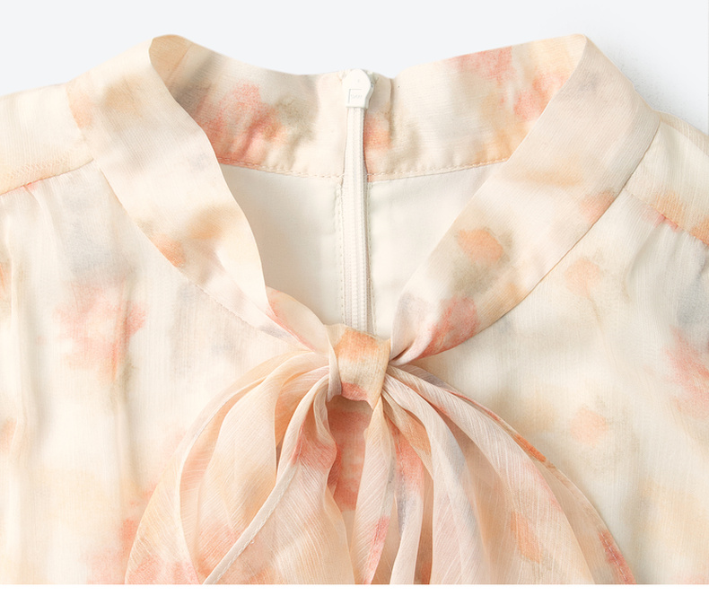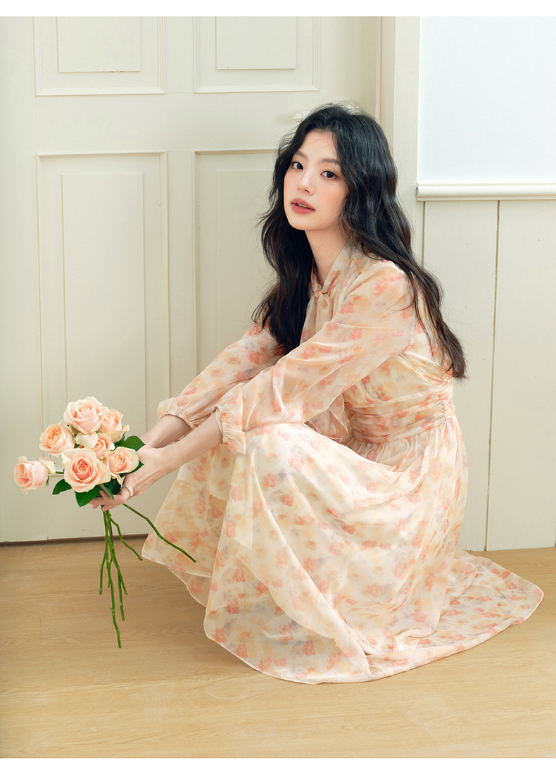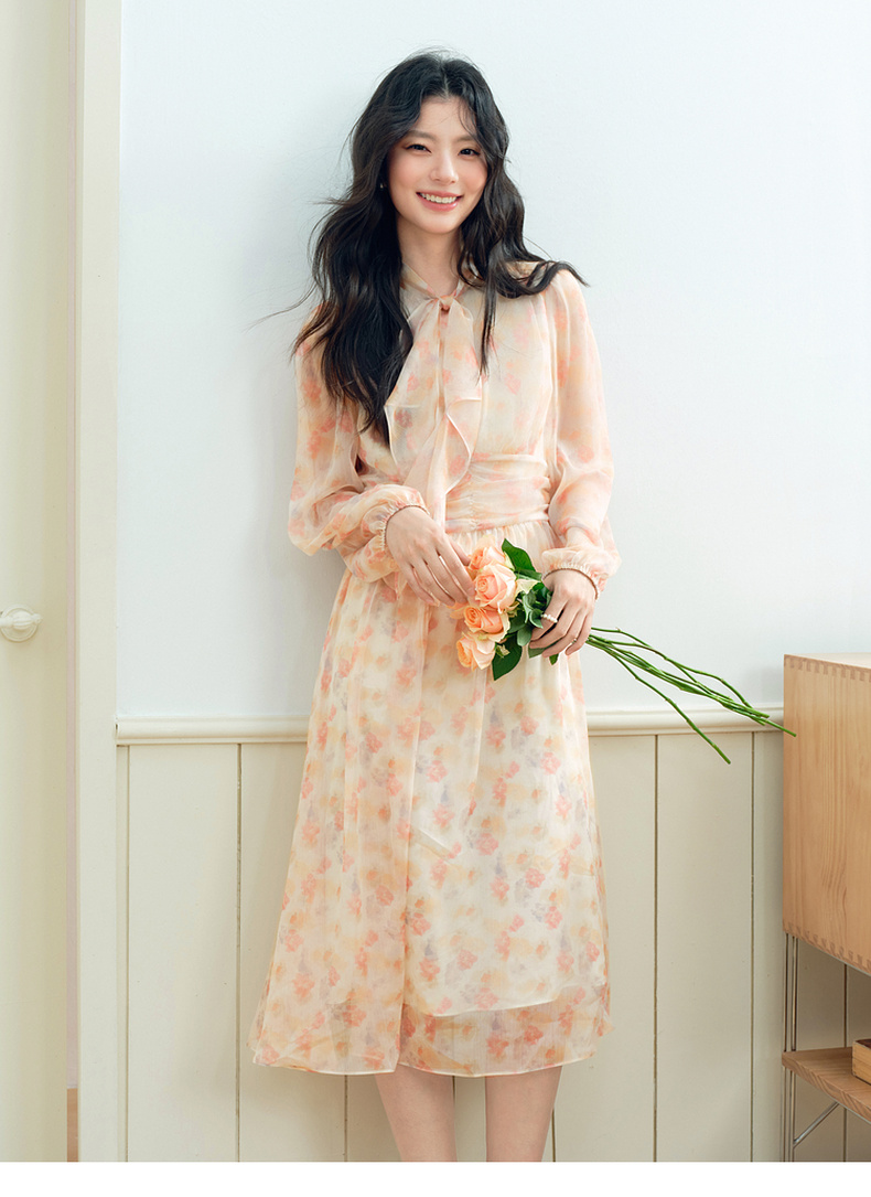 【严选】诗凡黎法式浪漫碎花飘带领连衣裙2025年春新款洋气减龄约会仙女裙7G2190581