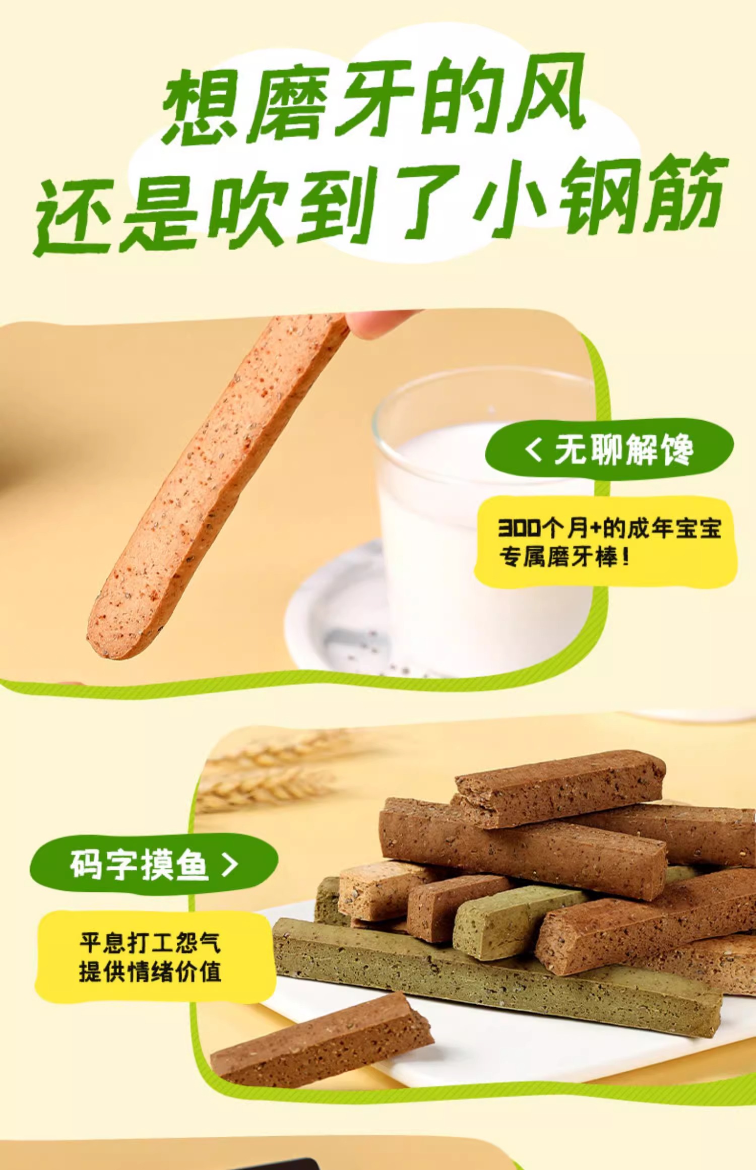 小钢筋磨牙棒饼干全麦棒成人蛋白棒低代餐饱腹卡减热量脂肪零食品