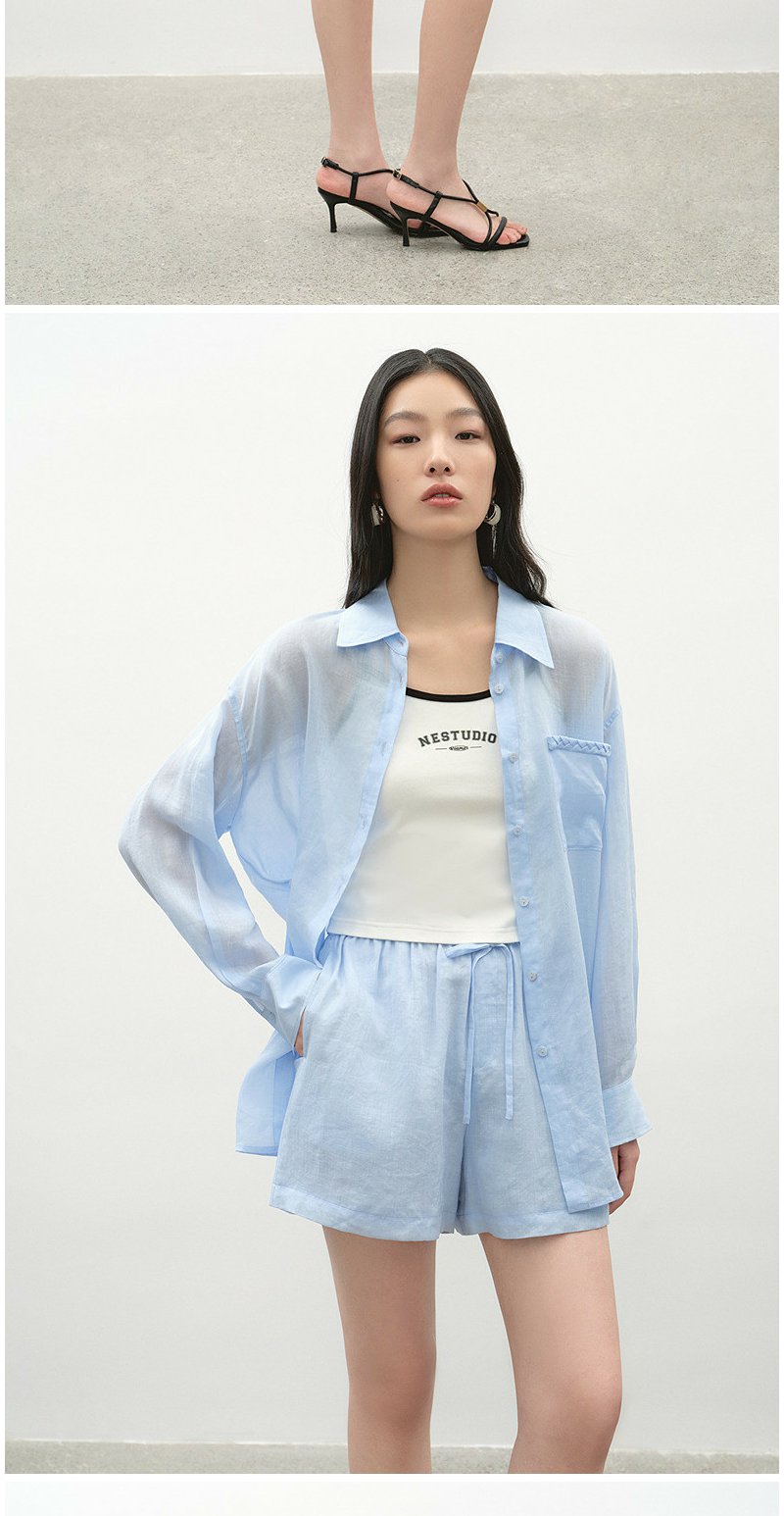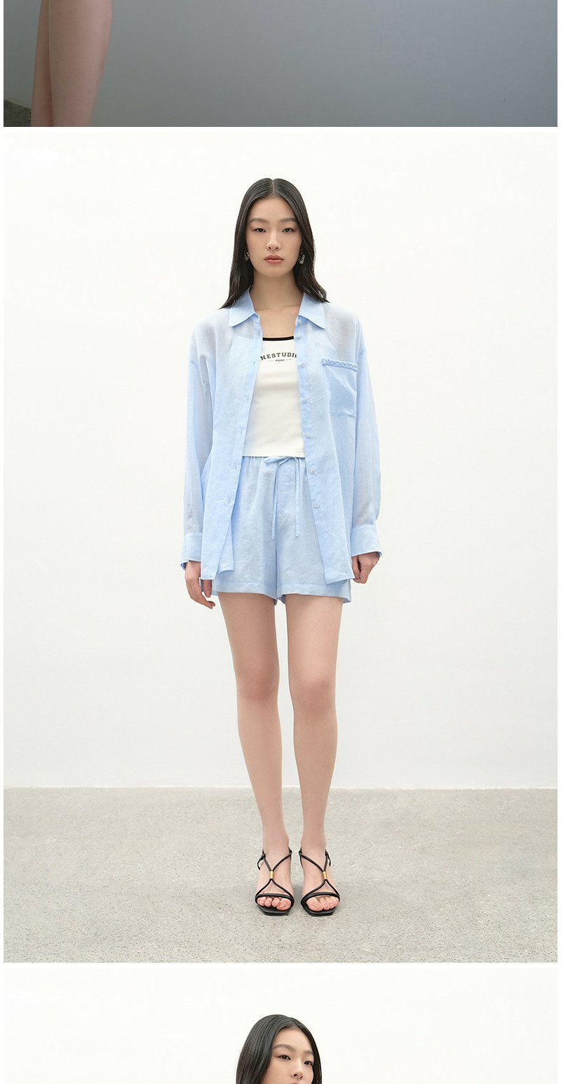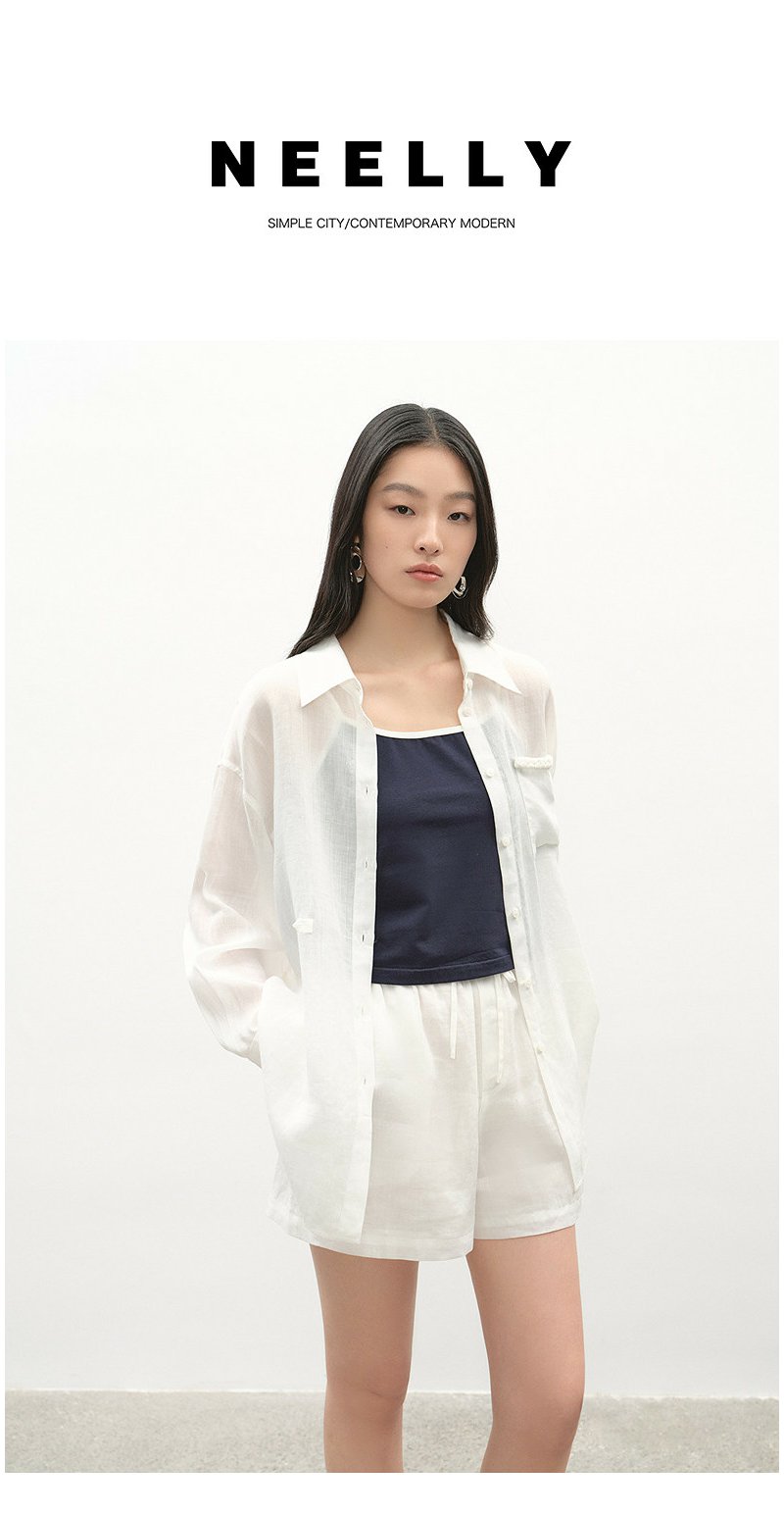 NEELLY纳俪商场同款夏季新款时尚显白简约衬衫两件套女休闲套装N26044Z04546