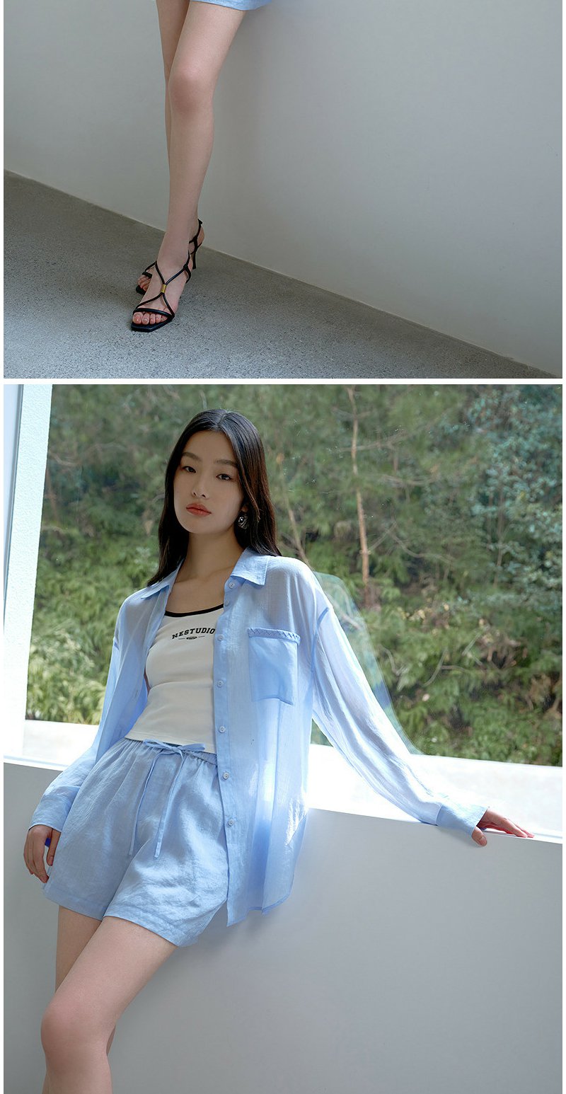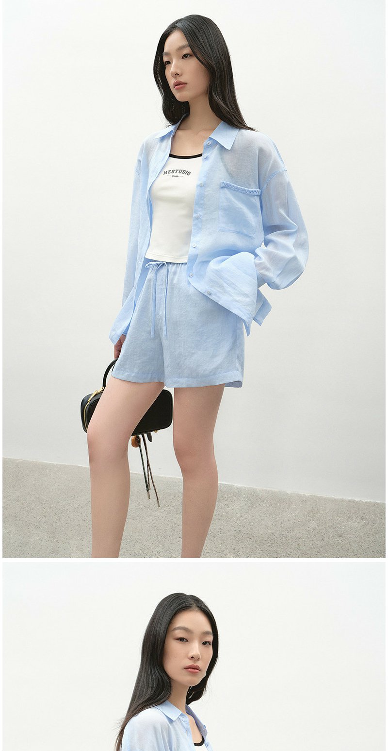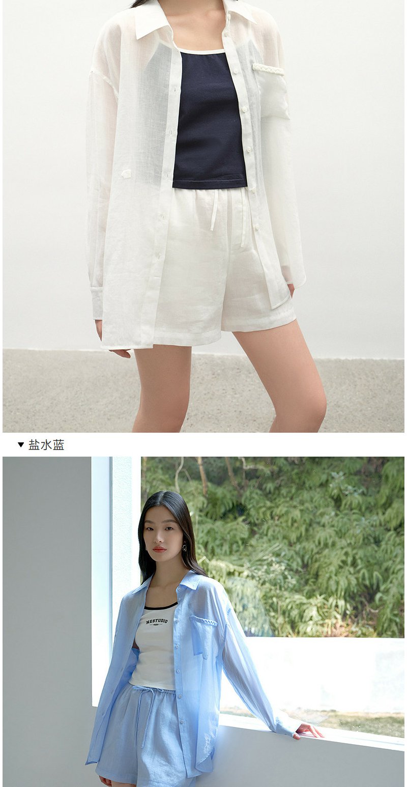 NEELLY纳俪商场同款夏季新款时尚显白简约衬衫两件套女休闲套装N26044Z04546
