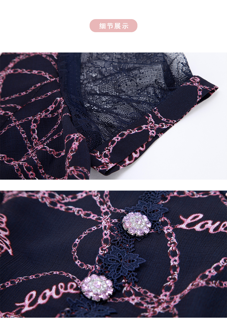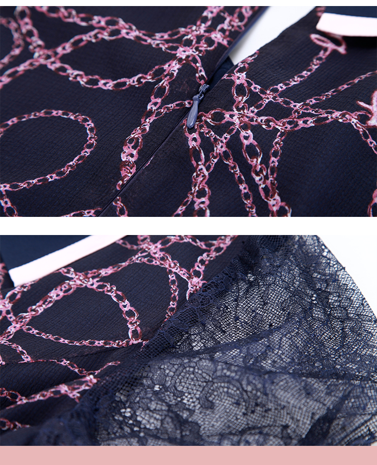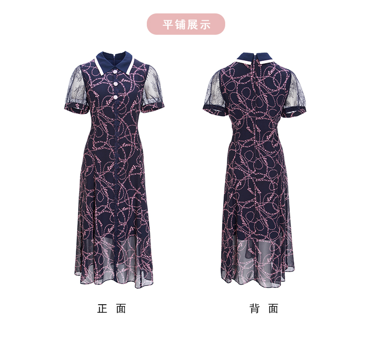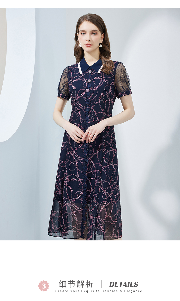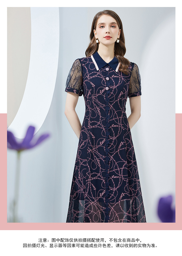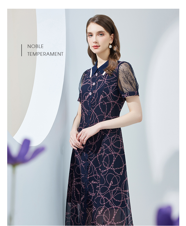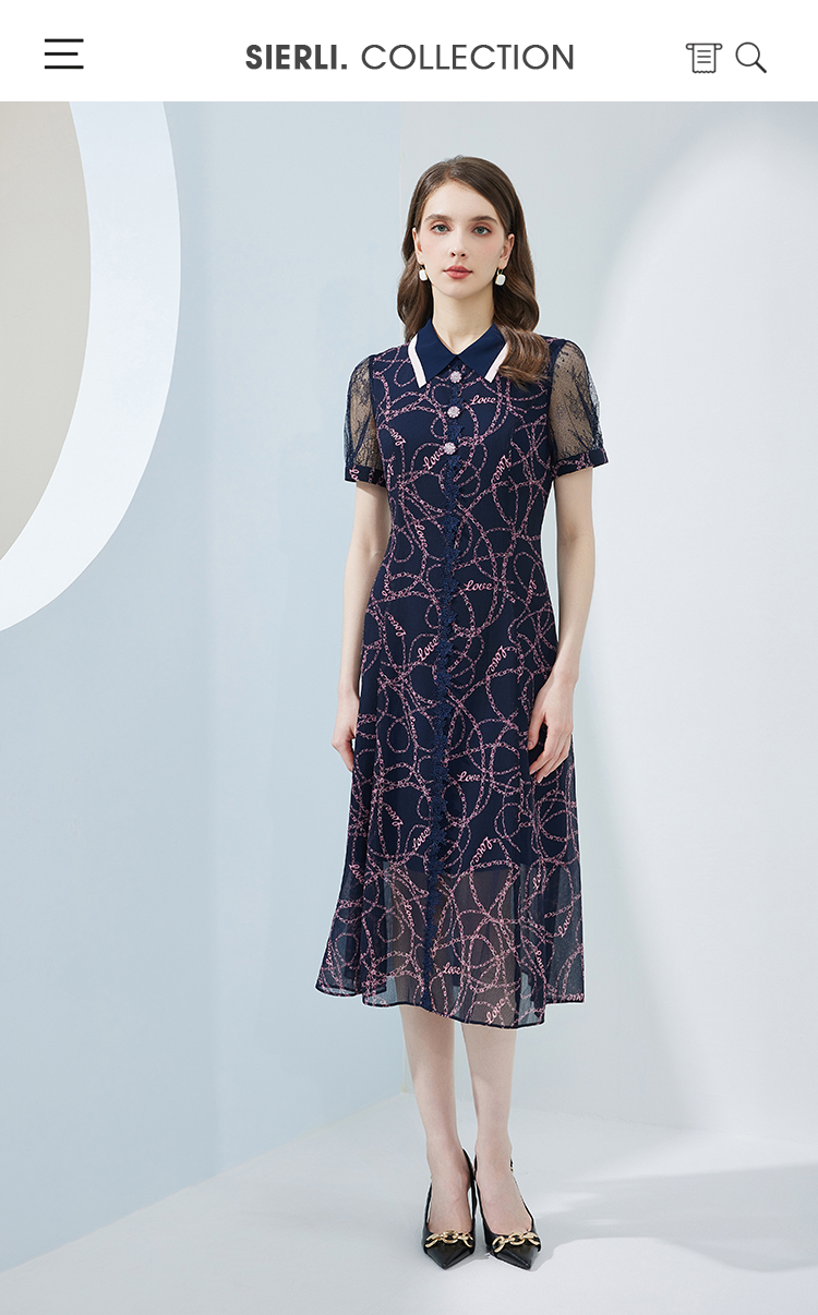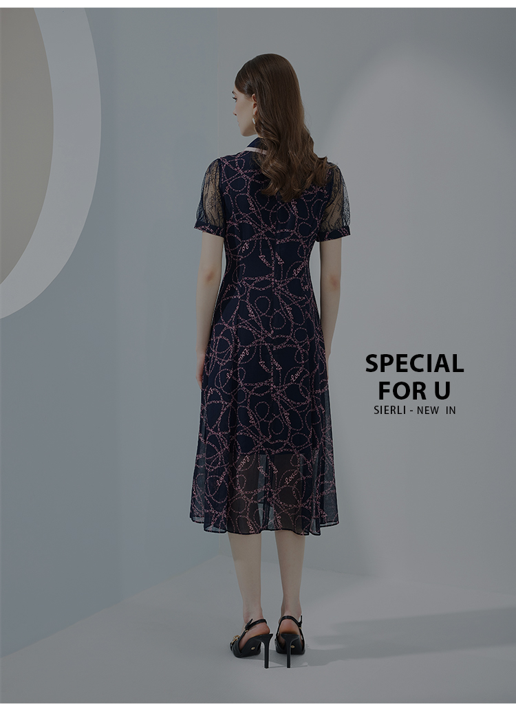 NF8Q6斯尔丽瑟俪2023夏季新款蕾丝印花高腰节设计配色领子连衣裙