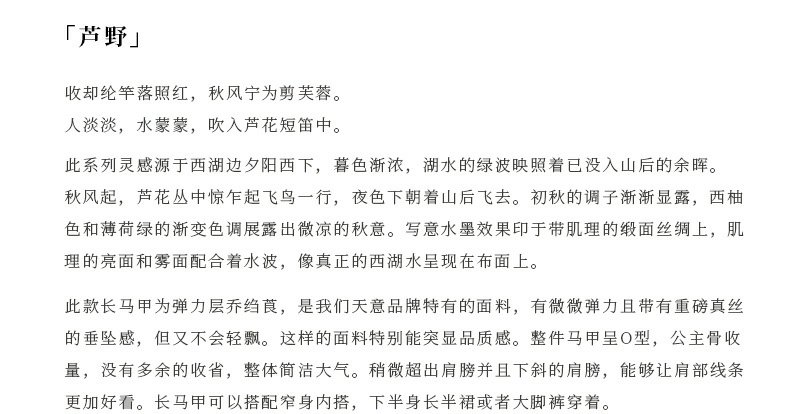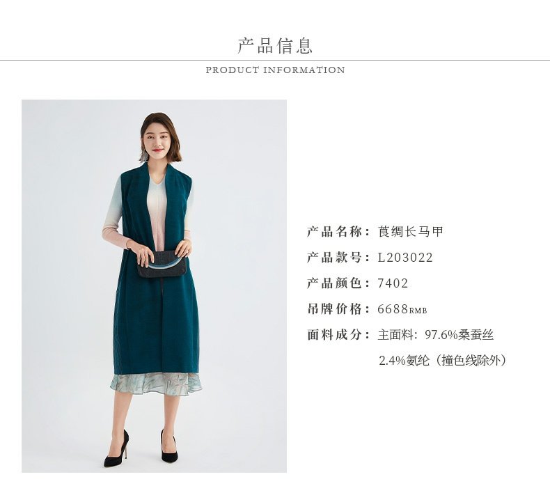 TANGY Collection/天意精品夏季新品芦野系列真丝莨绸长马夹
