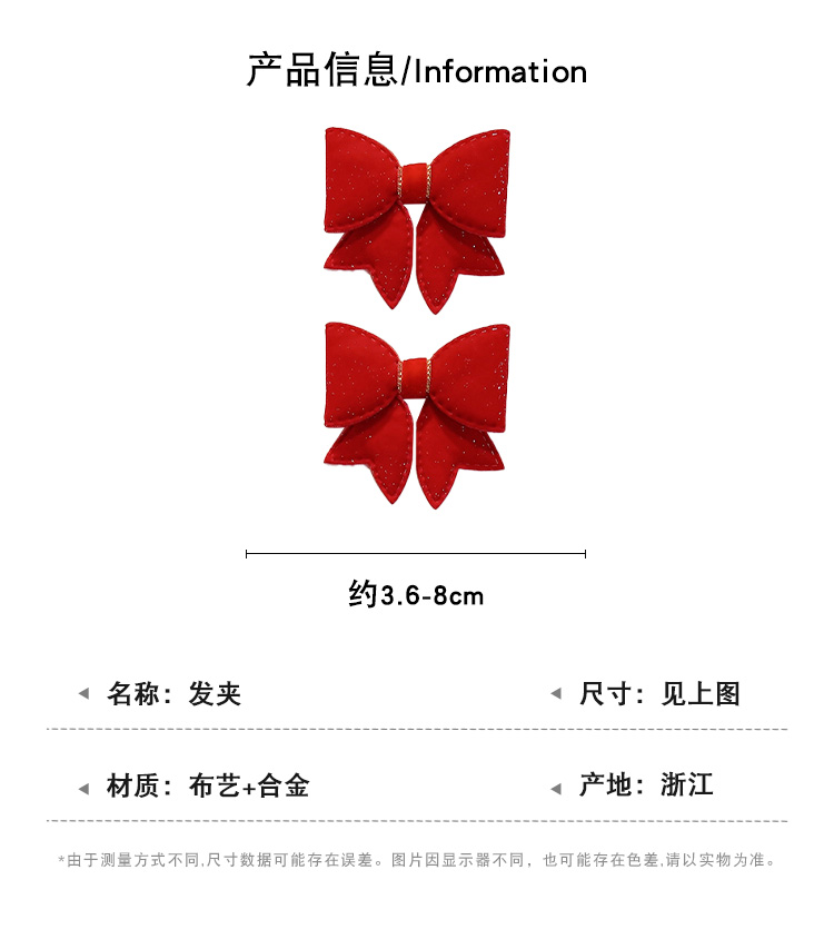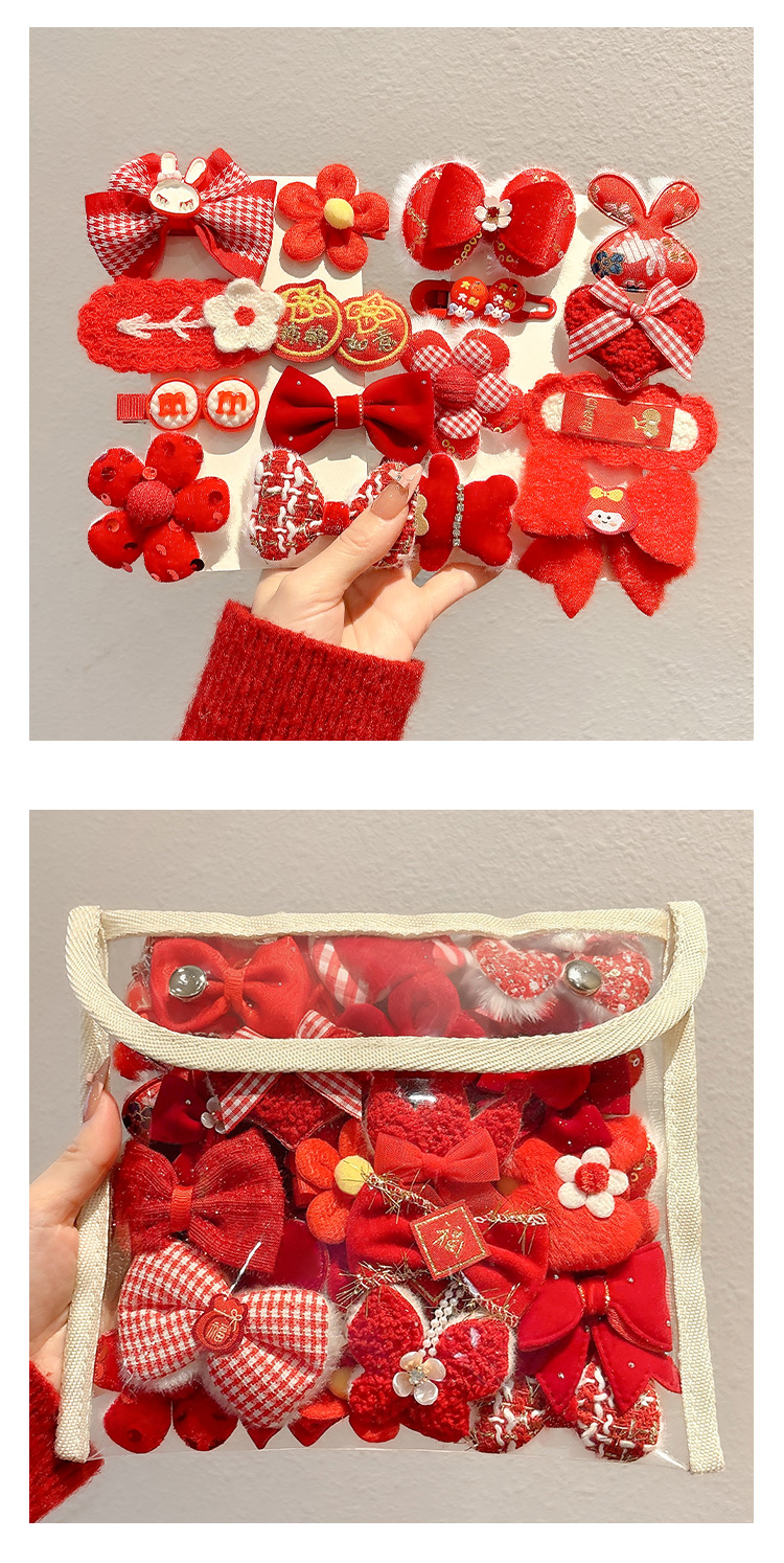 【9.9元8件套】2026年新年儿童新年红色蝴蝶结发夹女童过年侧边碎发刘海夹可爱喜庆夹子头饰★