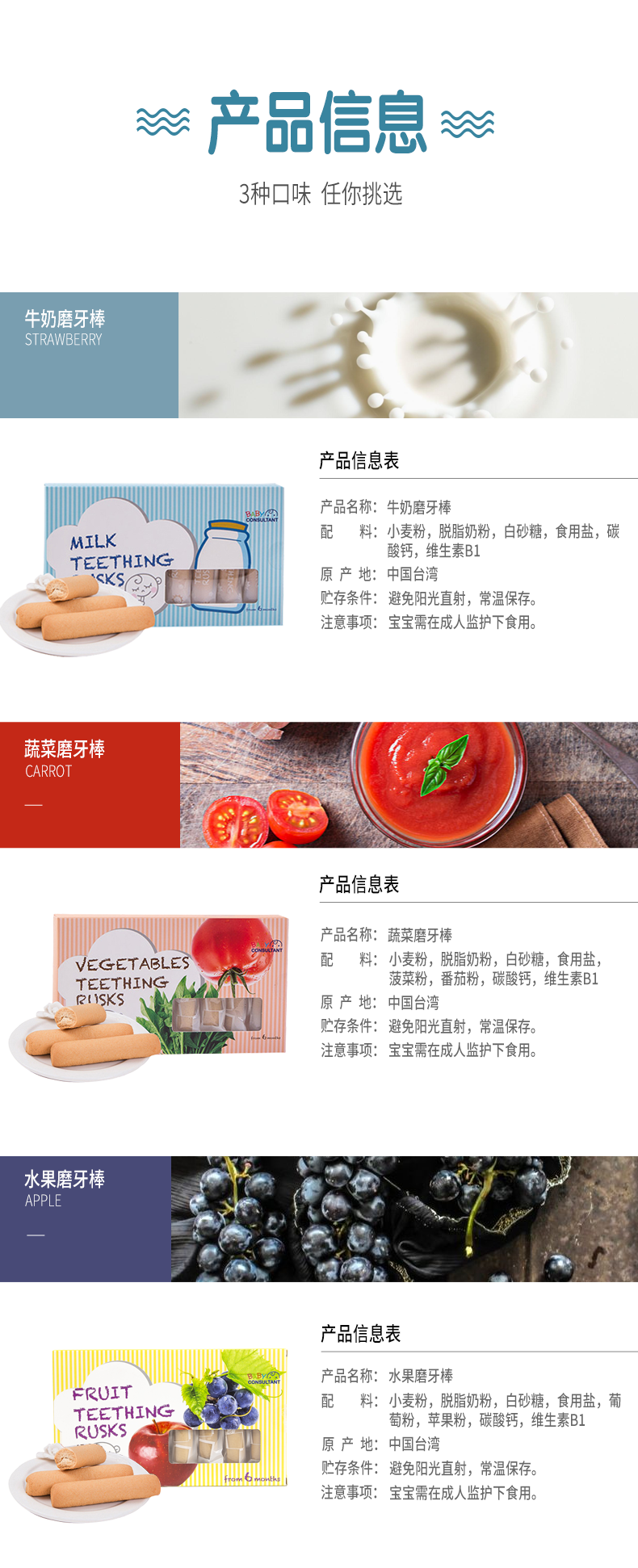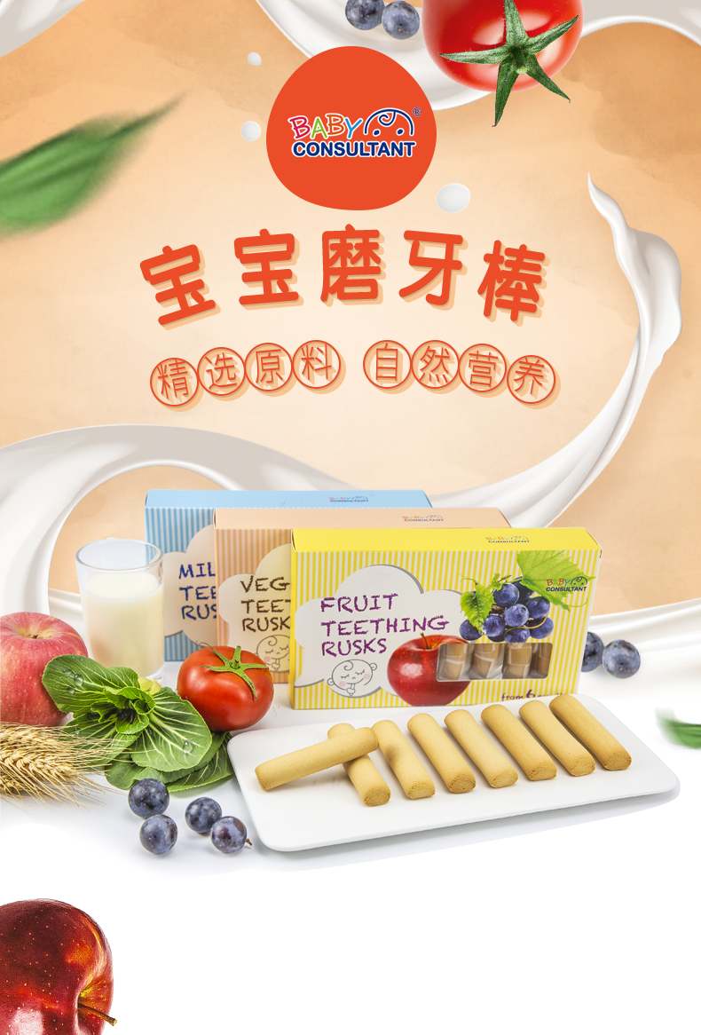 宝贝顾问硬磨牙棒饼干牛奶蔬果味宝宝婴儿磨牙棒辅食儿童零食