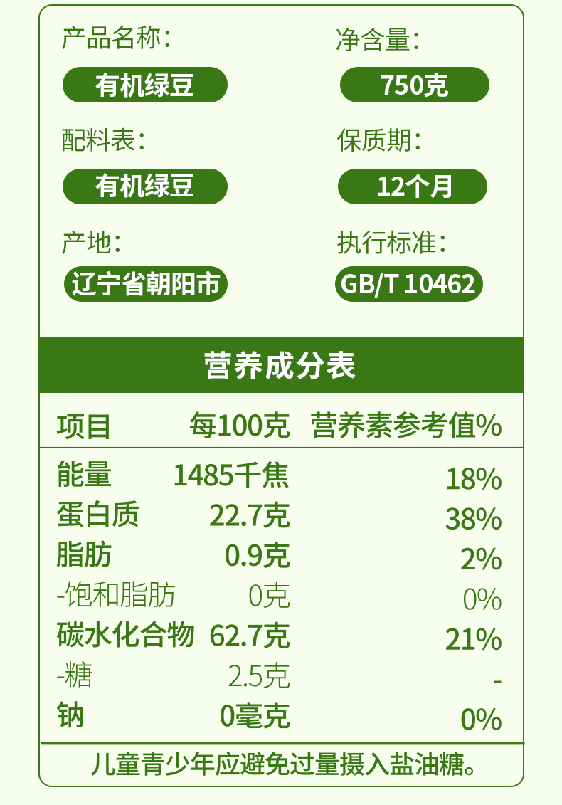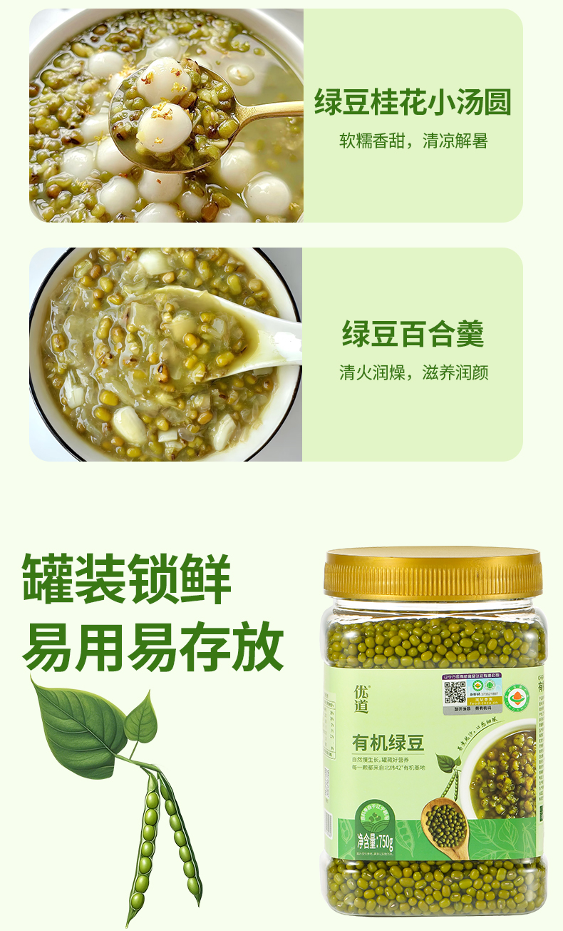 【武汉-蔡甸】优道有机绿豆750g/750g*2