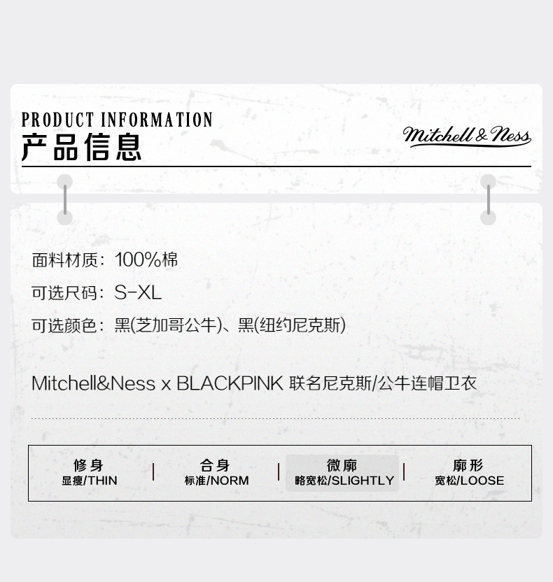 Mitchell&ness x BLACKPINK 联名芝加哥公牛/纽约尼克斯连帽卫衣