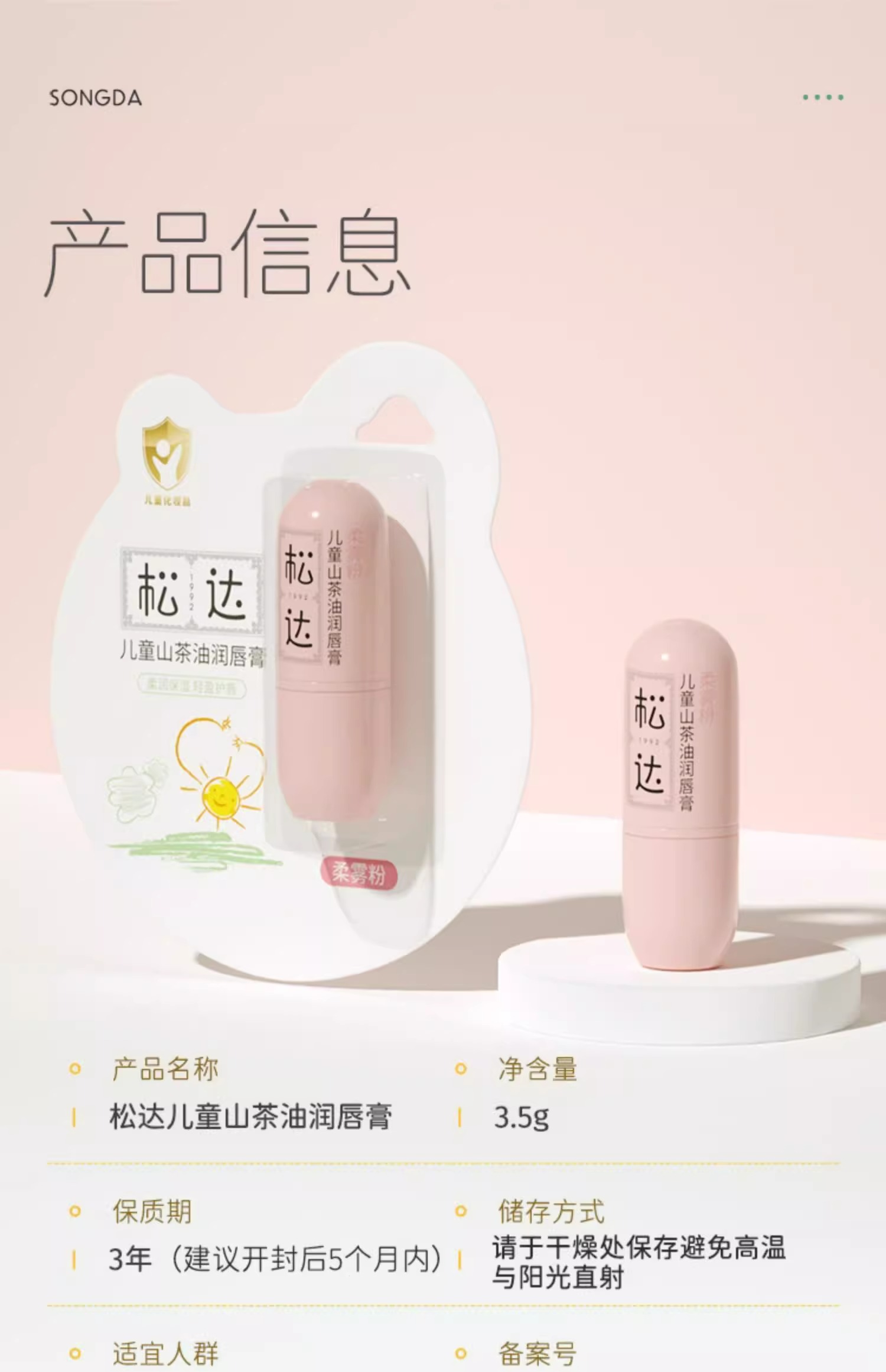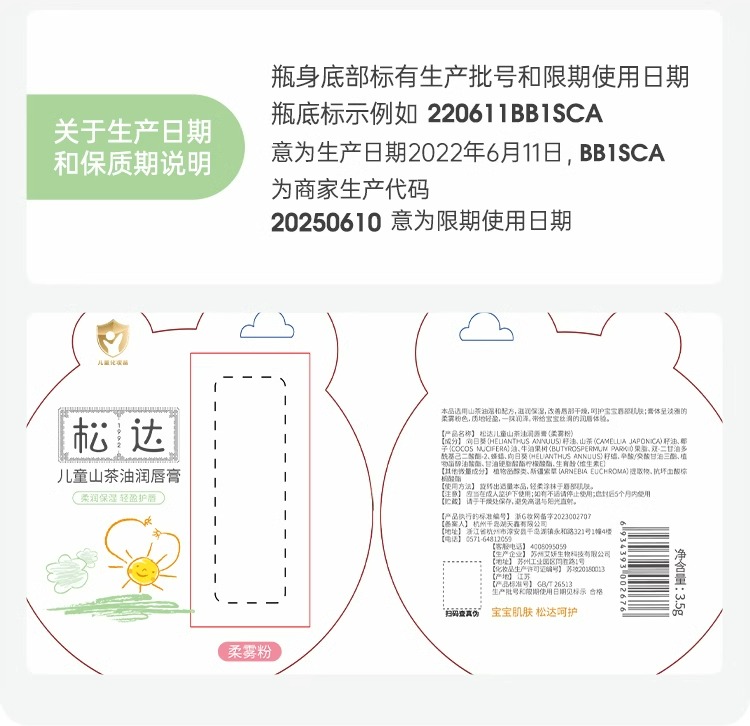 松达山茶油儿童润唇膏3.5g(3岁+儿童适用)