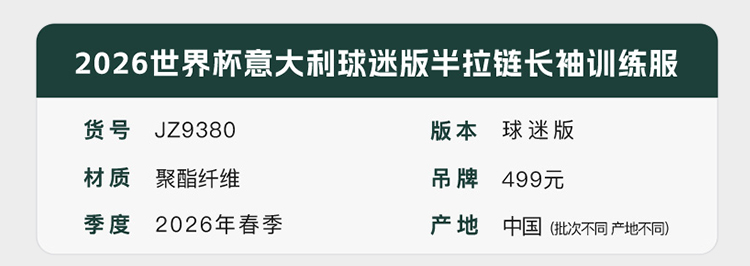 小李子ADIDAS阿迪达斯意大利球迷版半拉链长袖训练服成人男JZ9380