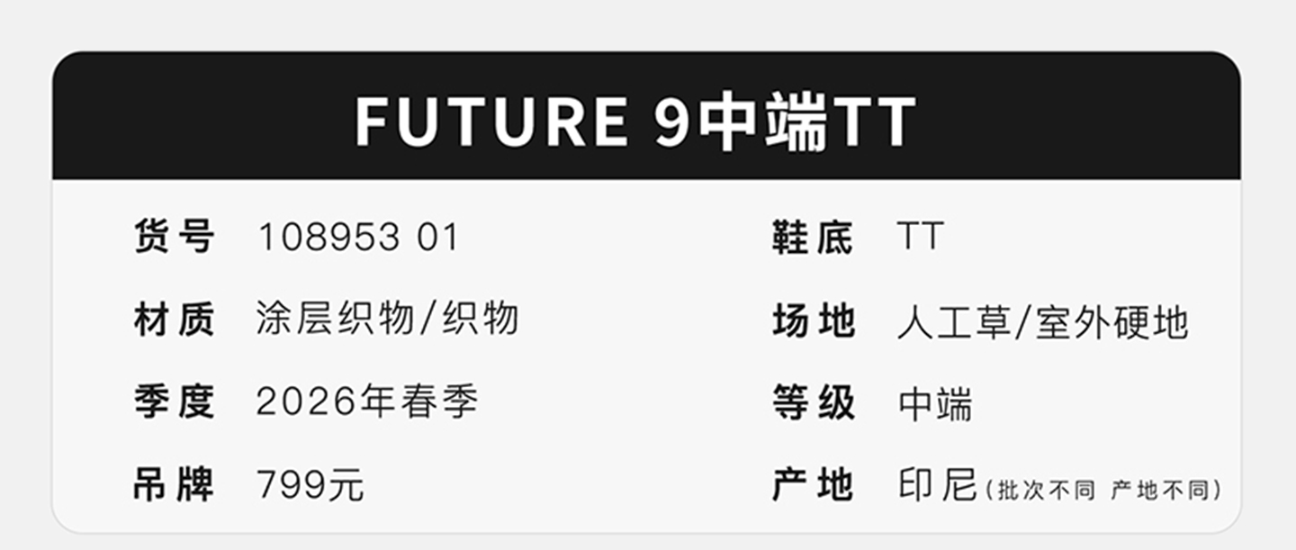 小李子PUMA彪马 FUTURE 9 中端TF碎钉训练成人足球鞋男108953 01