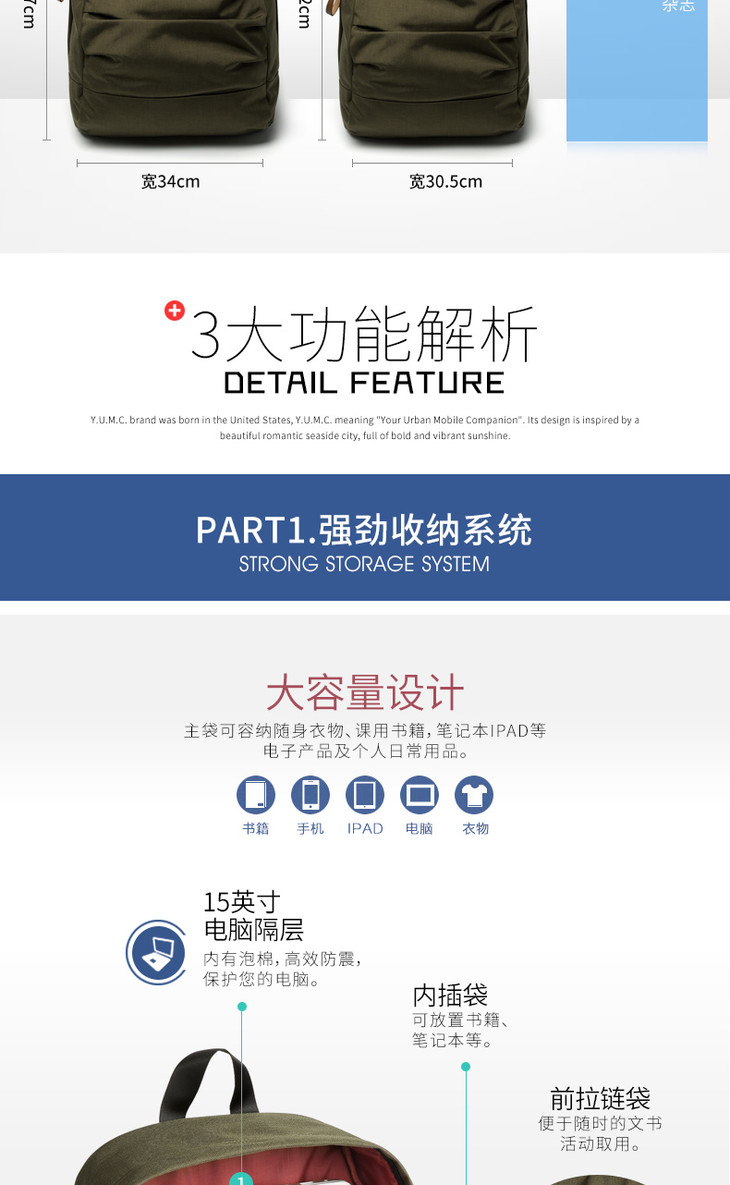 YUMC背包 Haight系列B3015双肩包旅行休闲