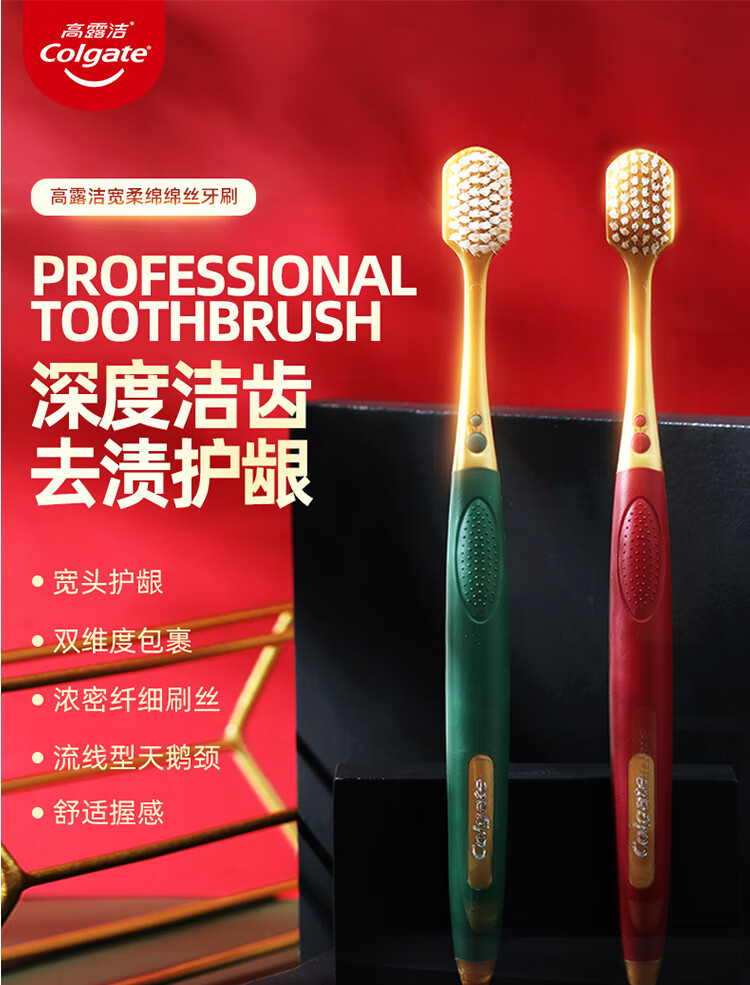 高露洁 超细软毛宽柔绵绵丝牙刷 2支/卡