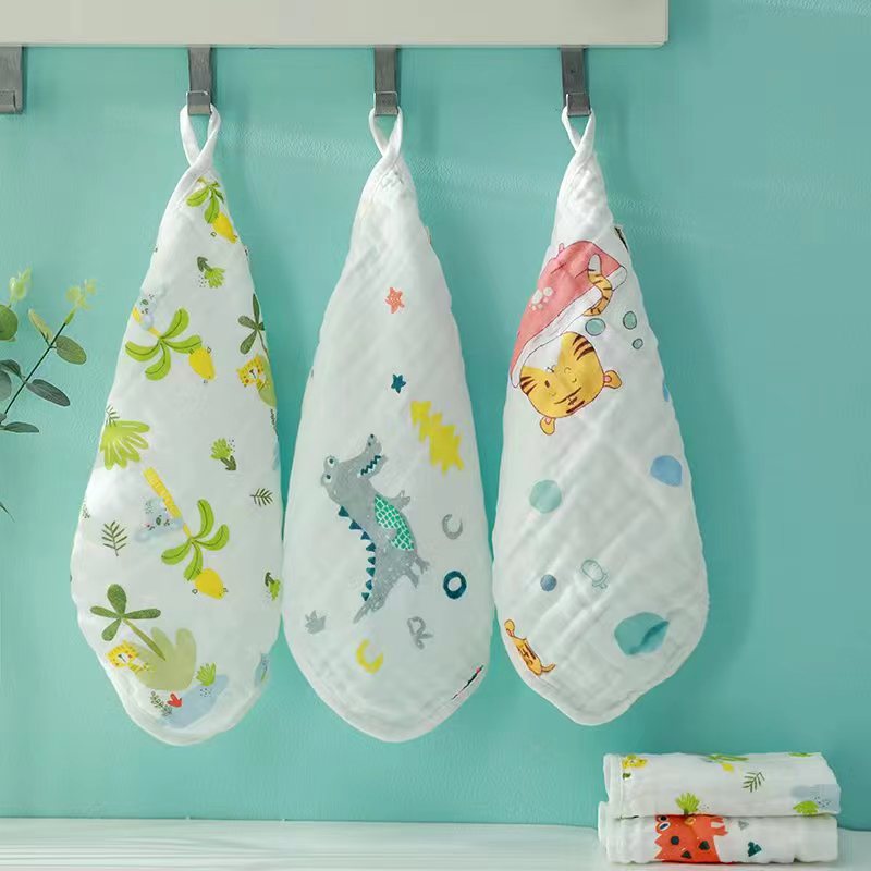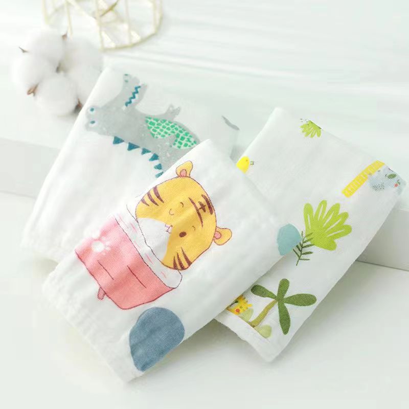棉花树纯棉纱布印花方巾3条装MR008#26cm*26cm