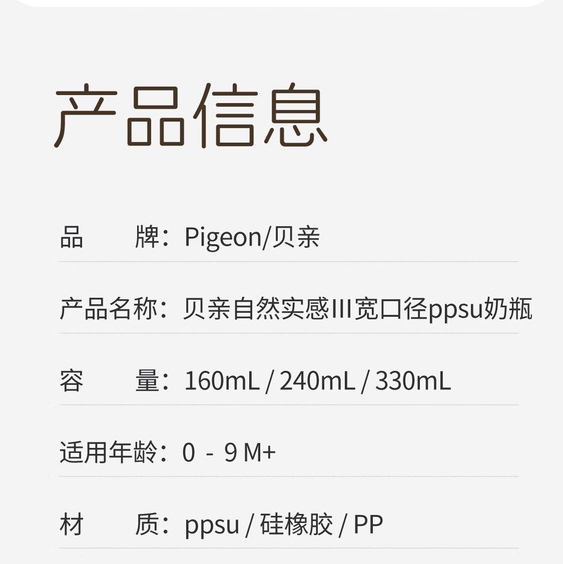 贝亲宽口径PPSU奶瓶160mL-SS