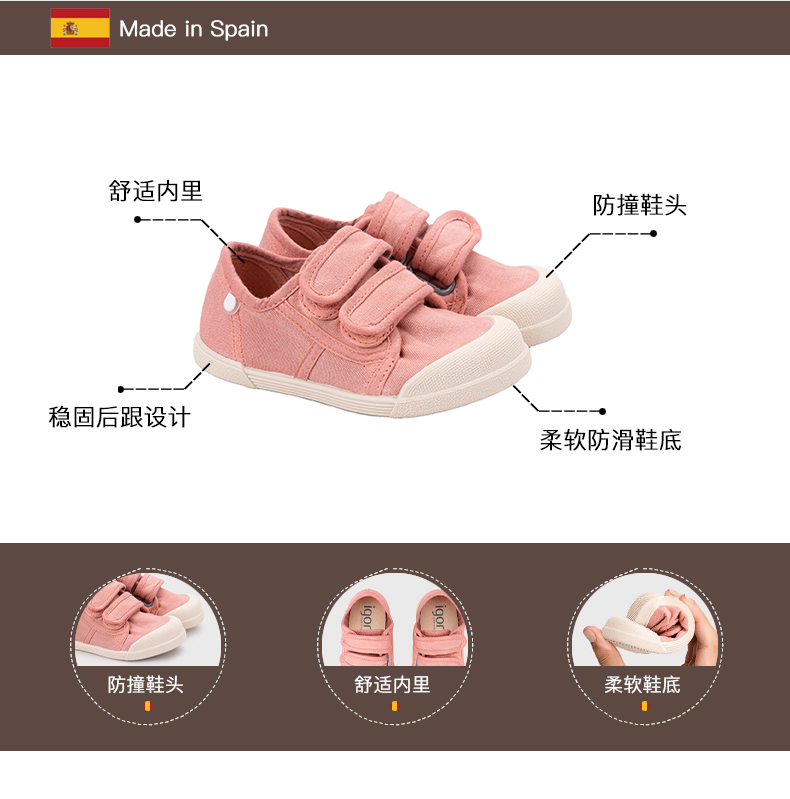 IGOR 26SS新品 西班牙进口宝宝赤足学步鞋魔术贴帆布鞋