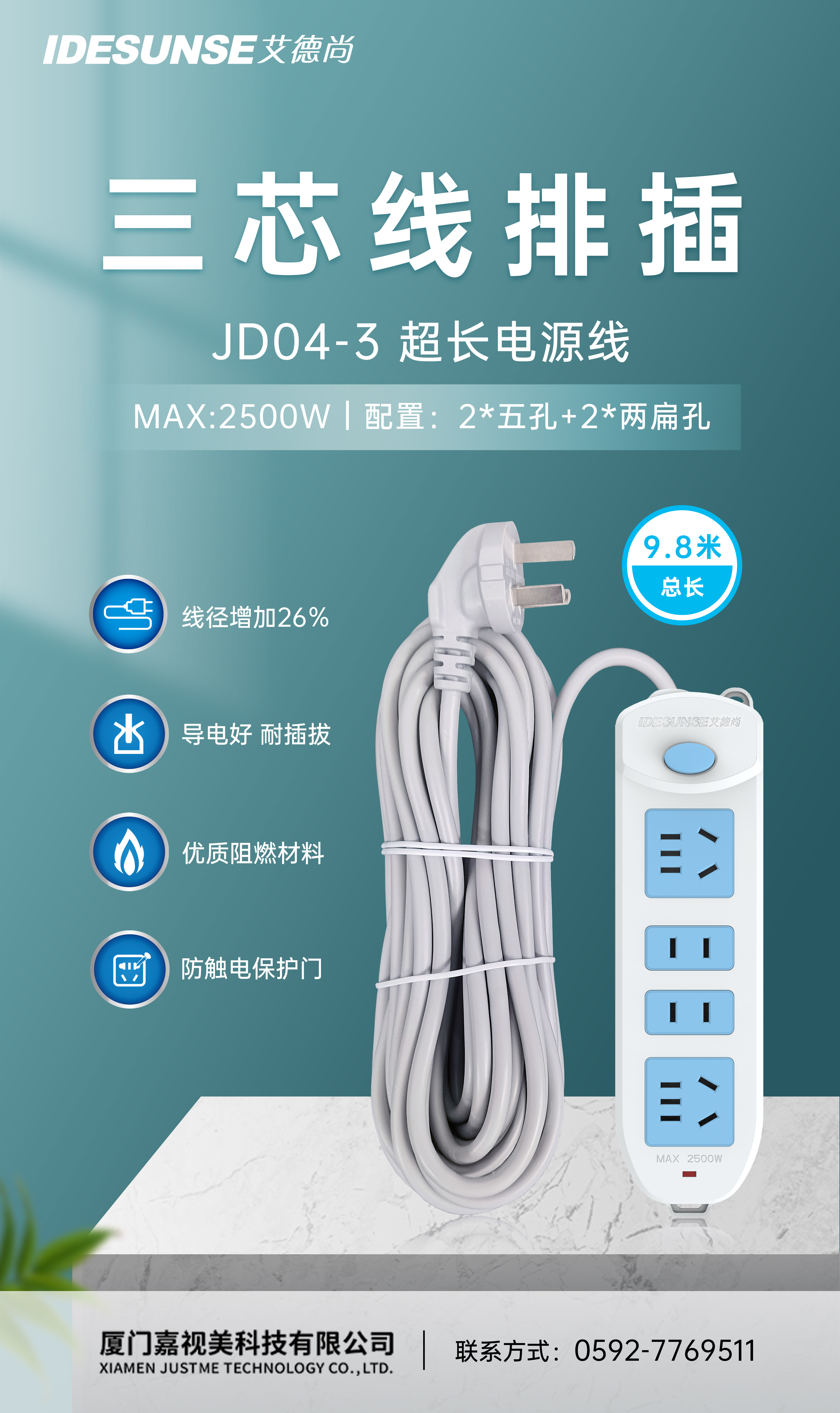 艾德尚 延长线插座/JD04-3-(2X0.75mm2+1X0.58mm2 9.8M)