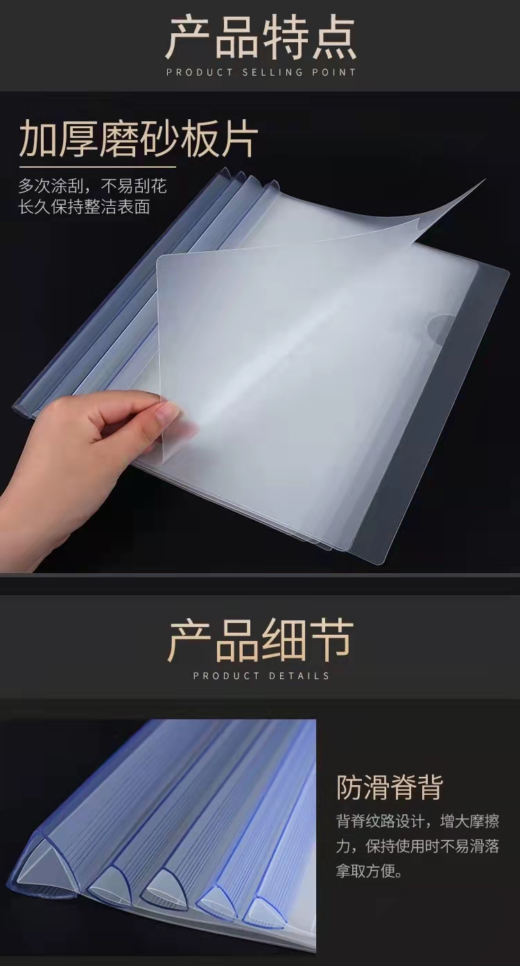 华文达抽杆夹A4加厚抽拉杆夹磨砂面文件夹透明杆报告材料夹