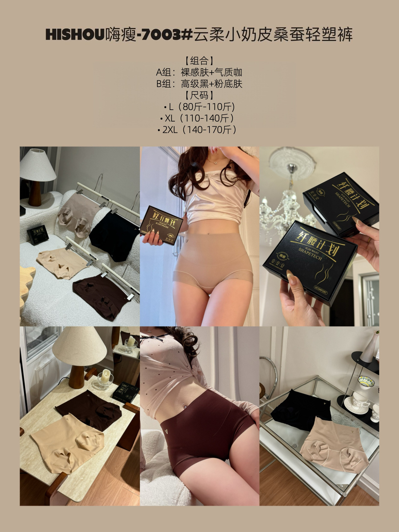 SHOU嗨瘦-7003#云柔小奶皮桑蚕轻塑裤高弹力无痕提臀透气抗菌内裤女