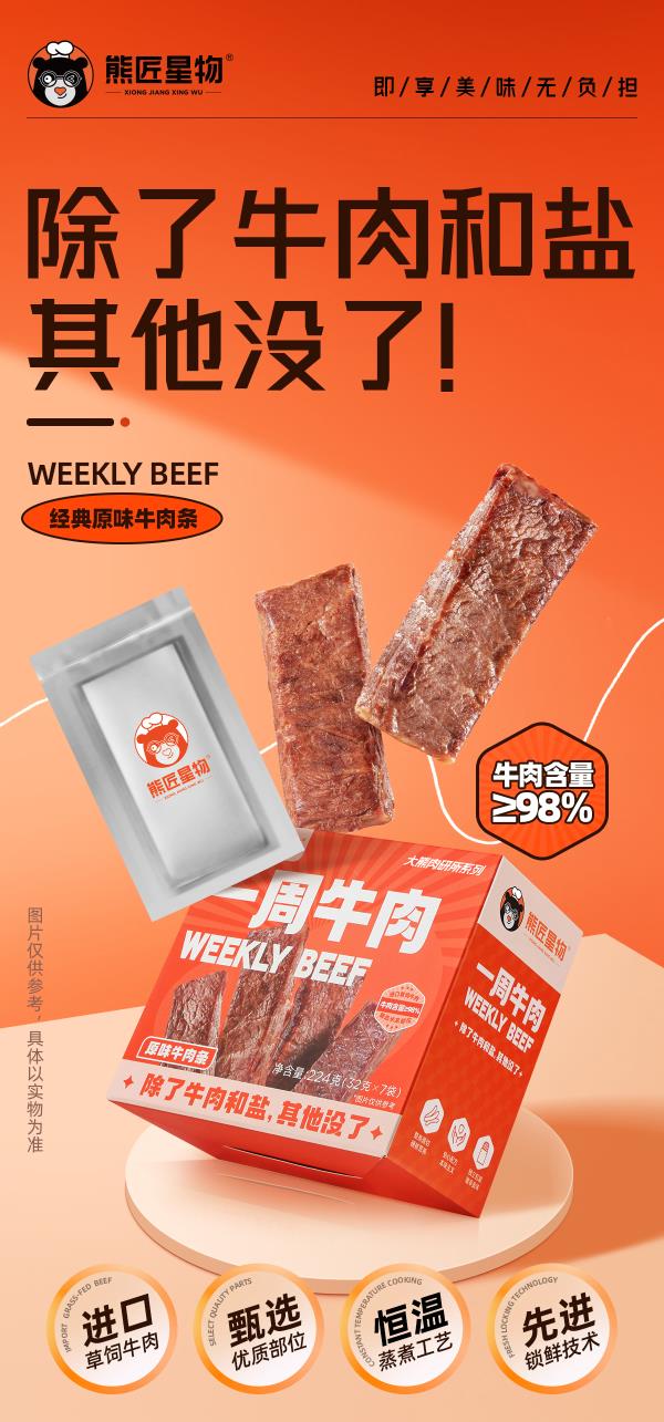 【熊星匠物·一周牛肉】超香!原味牛肉条 黑胡椒味牛肉条 | 每盒224g,爱吃牛肉和健身减脂人必备