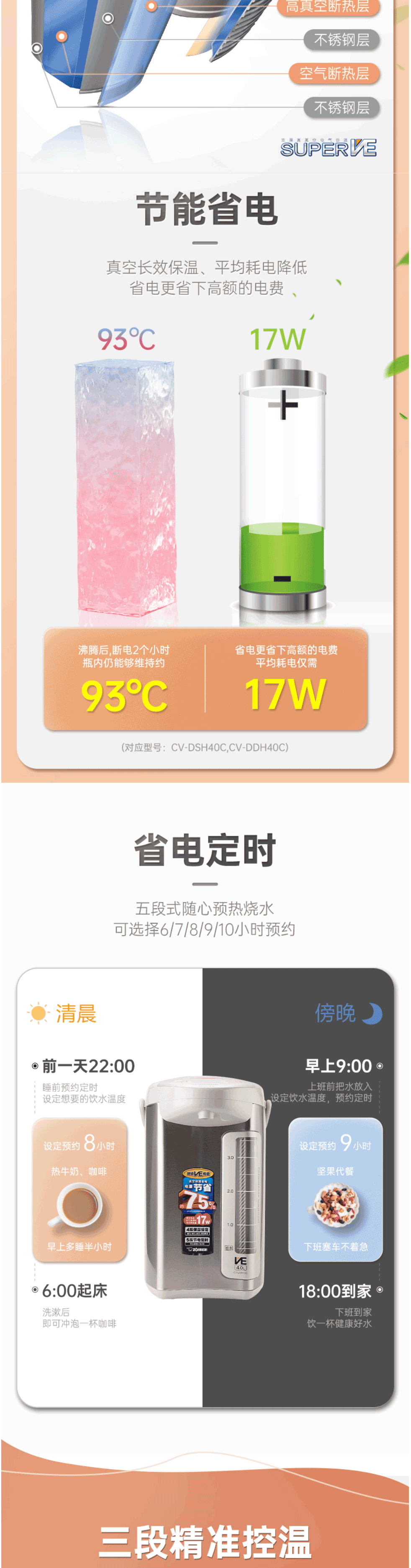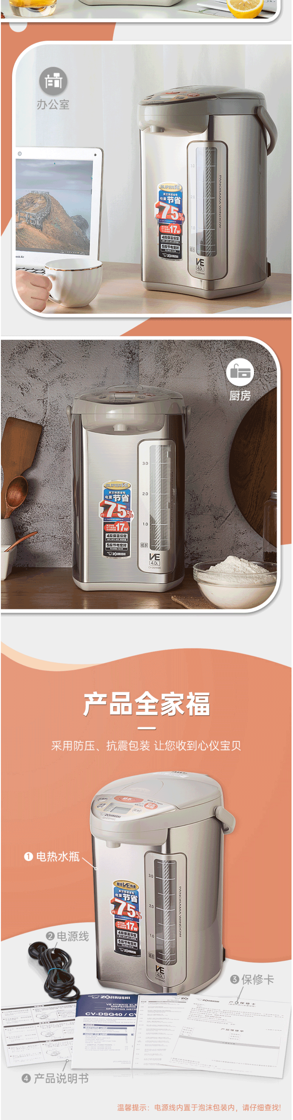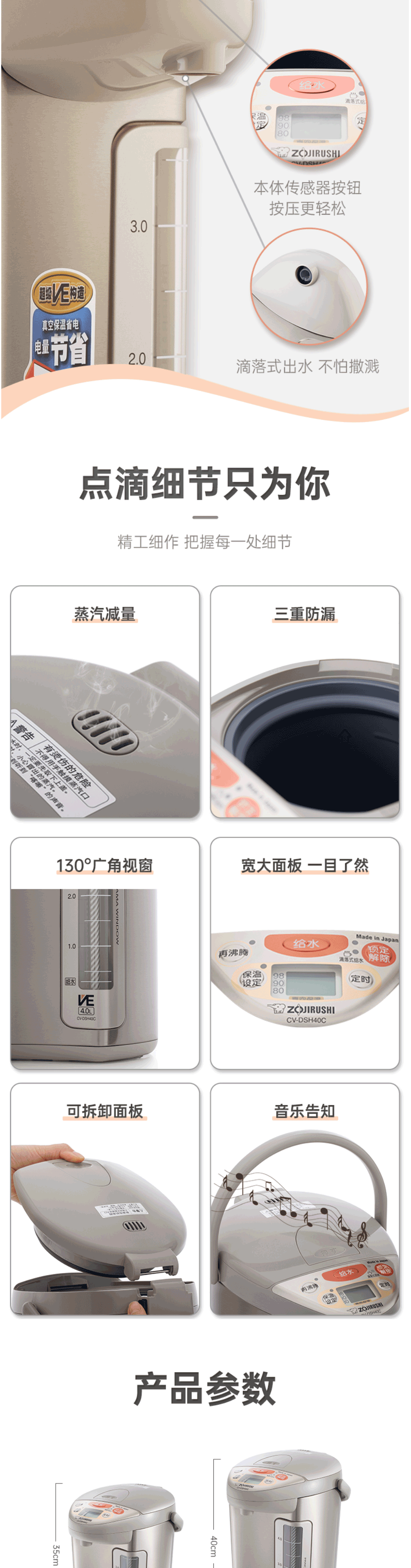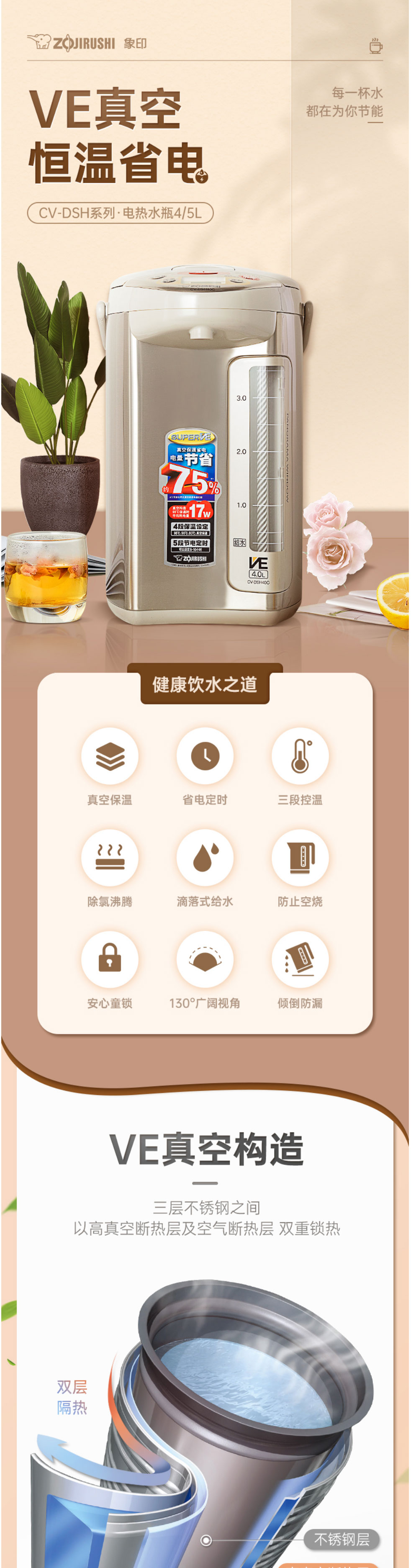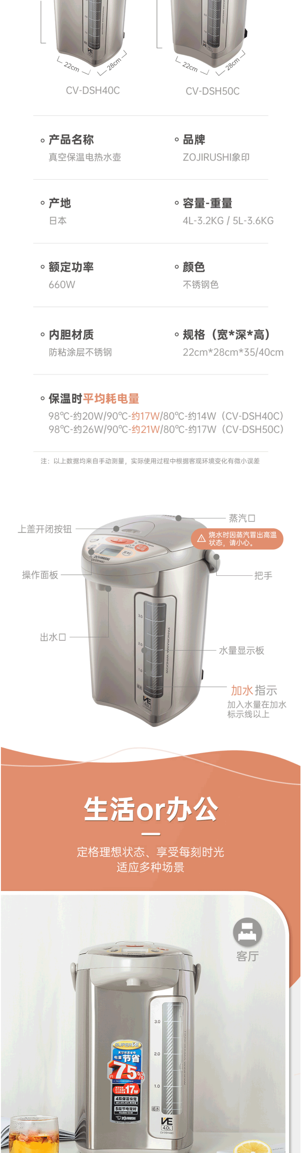 象印(ZO JIRUSHI)电水壶 日本原装进口 VE真空保温4L CV-DSH40C-XA不锈钢色