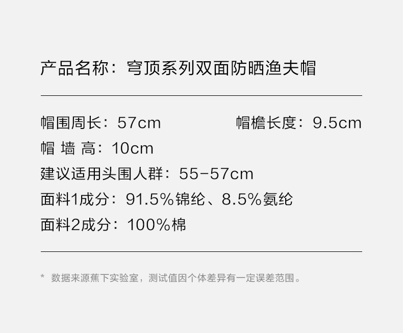 蕉下穹顶系列双面防晒渔夫帽