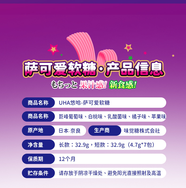 萨可爱乳酸菌味手撕软糖(长款)32.9g